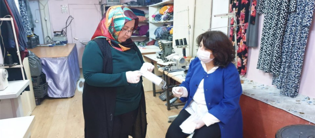 Bayan terzilerimizin ve usta öğreticilerimizin ürettiği maskeleri, sterilizasyon işleminin ardından vatandaşlarımıza dağıtmaya başladık. Bu zamana kadar yaklaşık 10000 maskeyi; Belediyemize müracaat eden hemşerilerimize, esnafımıza, pazara gelen vatandaşlarımıza ve kamu kurumlarımıza dağıttık.