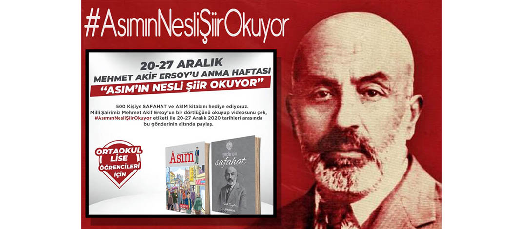 Son katılım tarihi olarak 27 Aralık 2020 olarak belirlenen etkinlik sonunda 500 öğrenciye Mehmet Akif Ersoy’un Sefahat ve Asım kitapları hediye edilecek.