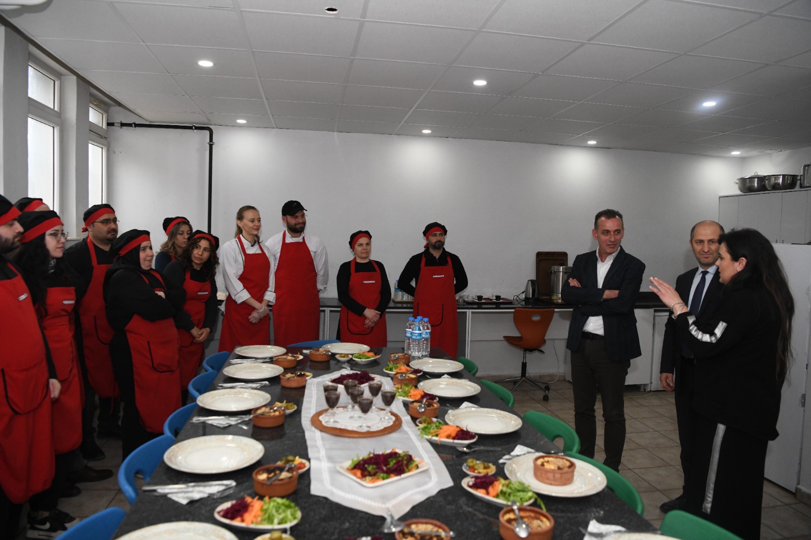 Samsun Büyükşehir Belediyesi tarafından İlkadım Halk Eğitim Merkezi Müdürlüğü iş birliğinde düzenlenen kurslara katılan kursiyerler meslek öğrenip çalışma hayatına katılıyor. Açılan Aşçı Yardımcılığı kursuna katılan kursiyerlere başta Samsun’un yöresel yemekleri olmak üzere Türk Mutfağı yemekleri ile ilgili detaylı eğitim verildi.Samsun Büyükşehir Belediyesi vatandaşları her alanda destekleyen eğitim çalışmalarına aralıksız devam ediyor. Bu kapsamda Sosyal Hizmetler Dairesi Başkanlığı, Kadın Aile ve Toplum Hizmetleri Şube Müdürlüğü’nün yaptığı çalışmayla İlçe Halk Eğitim Merkezleri iş birliğiyle açılan meslek edindirme kursları sürüyor. Son olarak açılan Aşçı Yardımcılığı ve Türk Mutfağı iki Meslek Edindirme Kursu’na 39 kursiyer katıldı. Kursiyerlerin hazırladığı Samsun’un en önemli lezzetlerinden biri olan kaz tiridi, tadım yapan Büyükşehir Belediyesi Kültür ve Sosyal İşler Daire Başkanı İdris Akdin ile Kadın Aile ve Toplum Hizmetleri Şube Müdürü Bekir Söylemez, Yaşlı ve Engelli Hizmetleri Şube Müdürü Emrah Baş’dan da tam not aldı.‘450 SAAT 3,5 AYA TEKABÜL EDİYOR’Usta Öğretici Mualla Köroğlu, öğrencilerin 450 saatlik bir kurs programına katıldıklarını belirterek “Kursumuzda öğrencilerimiz mutfak teknikleri alanında donanım sahibi oluyorlar. Maliyet, reçete, gramaj, menü planlama, ürünlerin hazırlama aşamasından tabaklamasına kadar, servisine kadar her şeyi öğrenmiş oluyorlar. 2023-2024 eğitim yılı içerisinde 2,5 aydır kursumuz devam ediyor. 450 saat 3,5 aya tekabül ediyor. Bu kurs sonunda kursiyerlerimiz ‘Meslek Eğitim Belgesi’ alacaklar ve bu alanda bir iş edinmeye hak kazanmış olacaklar. Bizlere her türlü desteği sağlayan Büyükşehir Belediyesi’ne teşekkürlerimi iletiyorum.” dedi.‘EĞİTİM ALMALARI ÇOK ÖNEMLİ’Büyükşehir Belediyesi Kültür ve Sosyal İşler Daire Başkanı İdris Akdin, vatandaşların meslek öğrenip istihdama katılmalarını sağlamak amacıyla açılan kurs programlarına çok önem verdiklerini belirterek “Kursiyerlerimiz arasında özellikle kadınlar yoğunlukta. Başta kadınlar olmak üzere vatandaşlarımızın meslek sahibi olmalarını için bu tür kurs programlarına katılarak eğitim almaları çok önemli. Kurs sonunda belge alacaklar ve çalışma hayatına katılacaklar. Bu noktada Büyükşehir Belediyesi olarak vatandaşlarımızı her alanda olduğu gibi bu tür eğitim çalışmaları içinde desteklemeye devam edeceğiz.” şeklinde konuştu.Köksal ÖNER