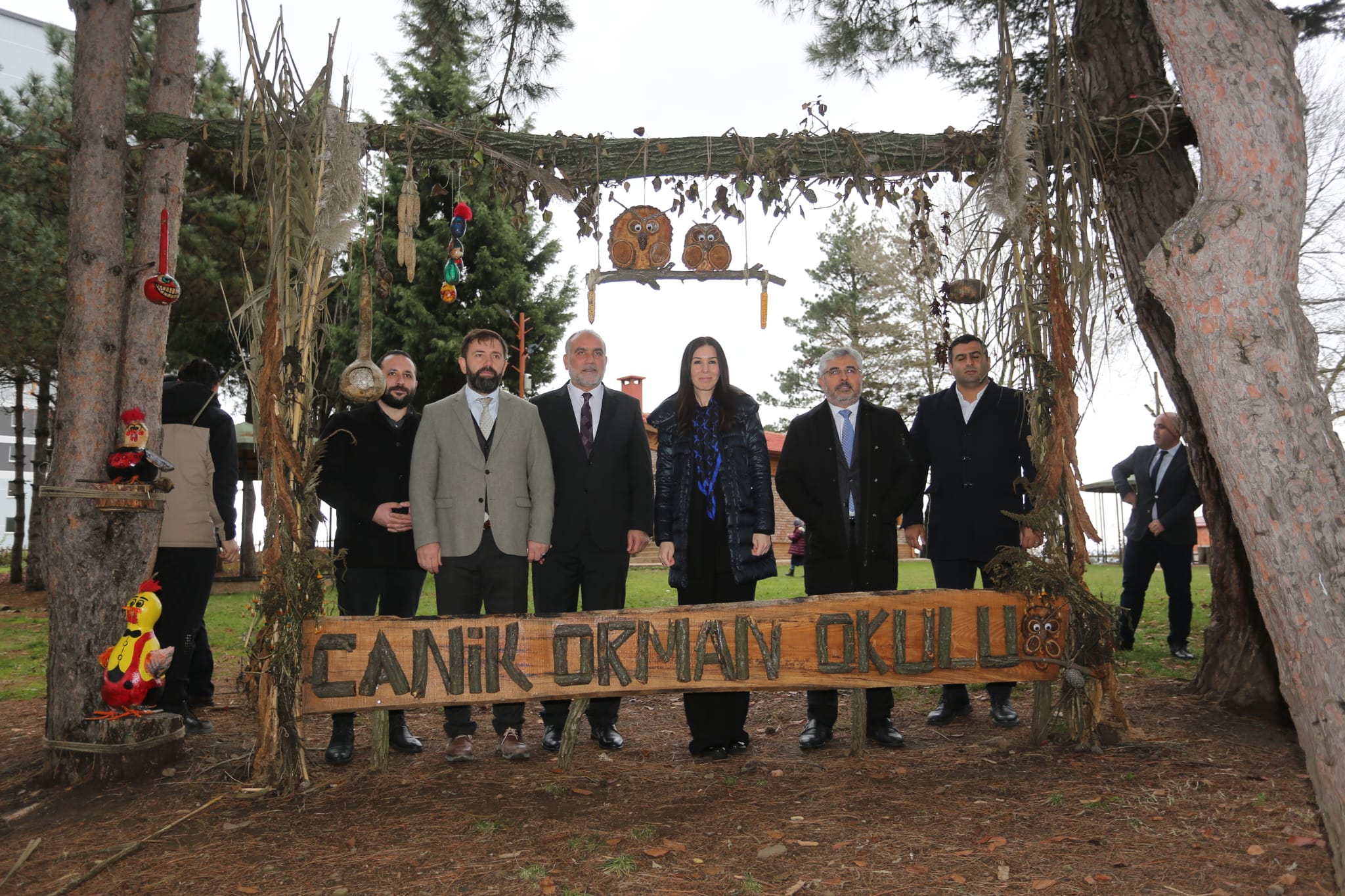 AK Parti Genel Merkez Çevre, Şehir ve Kültürden Sorumlu Genel Başkan Yardımcısı ve Samsun Milletvekili Çiğdem Karaaslan, Canik Belediye Başkanı İbrahim Sandıkçı ile birlikte Canik Orman Okulu’nu ziyaret ederek öğrencilerin gerçekleştirdiği etkinliğe katıldı. Canik Orman Okulu’nun Türkiye’nin ilk devlet destekli orman okulu olduğunu ifade eden Canik Belediye Başkanı İbrahim Sandıkçı, “Türkiye’nin ilk devlet destekli orman okulu olan Canik Orman Okulumuzda gençler ve çocuklarımız doğa ile iç içekendilerini geliştirecekleri çeşitli etkinliklere bir araya geliyor. Okulumuzda bulunan sera alanlarında üretimlerini yaparken, aldıkları eğitimlerle doğa bilinci kazanıyor. Onlar için özel olarak oluşturduğumuz alanlarda öğretmenlerimiz eşliğinde deney ve gözlem çalışmalarını gerçekleştiriyorlar” dedi.