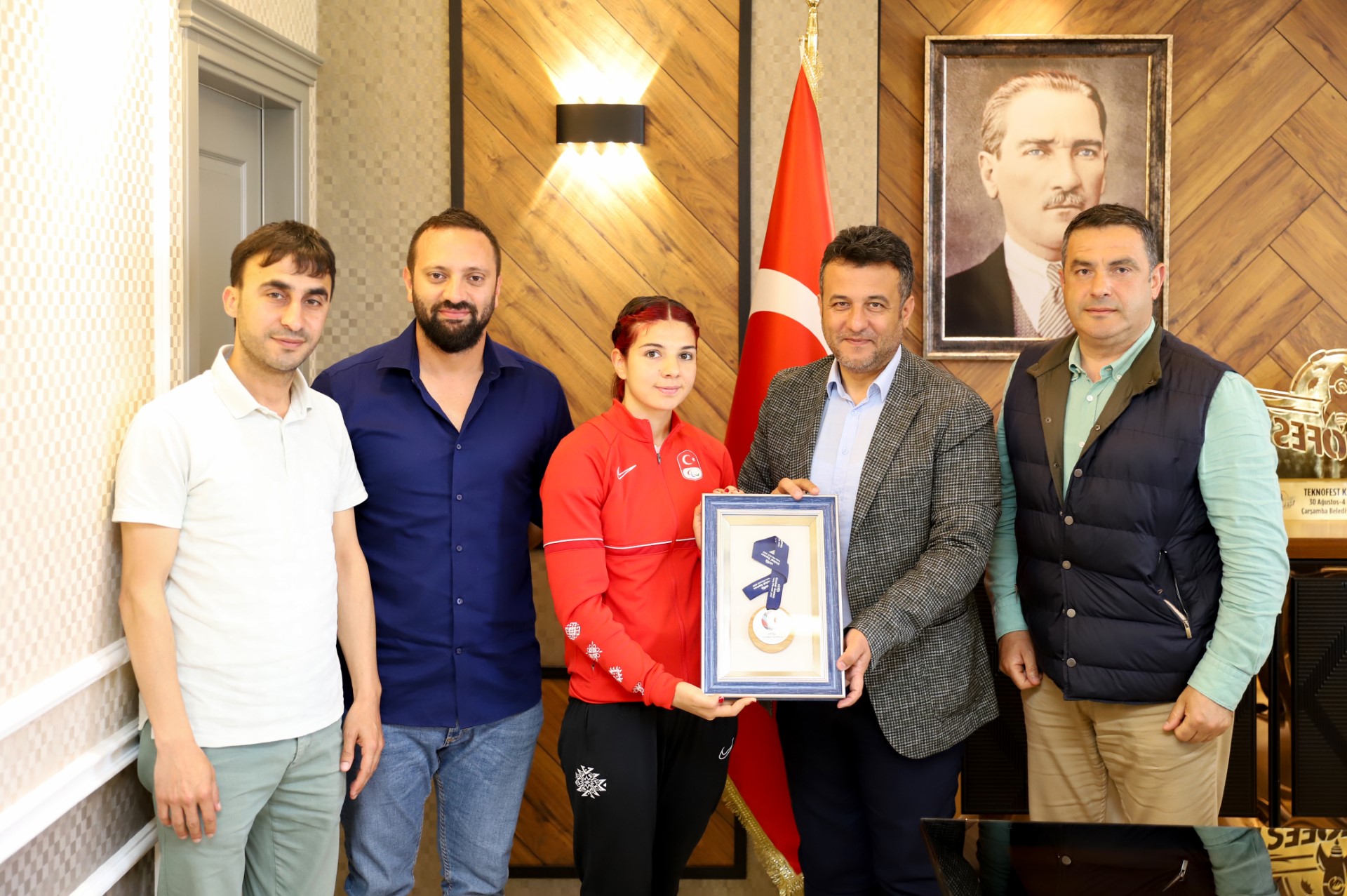 Çarşamba Belediyespor Kulübünün milli sporcusu Esra Bayrak, Fransa’da düzenlenen VIRTUS Global Oyunları’nda ülkemizi başarıyla temsil ederek madalyayla yurda döndü. Milli Sporcu Bayrak, kendisini her zaman destekleyen Çarşamba Belediye Başkanı Halit Doğan’ı madalyası ile ziyaret ederek, vermiş olduğu desteklerden dolayı Başkan Doğan’a teşekkür etti.