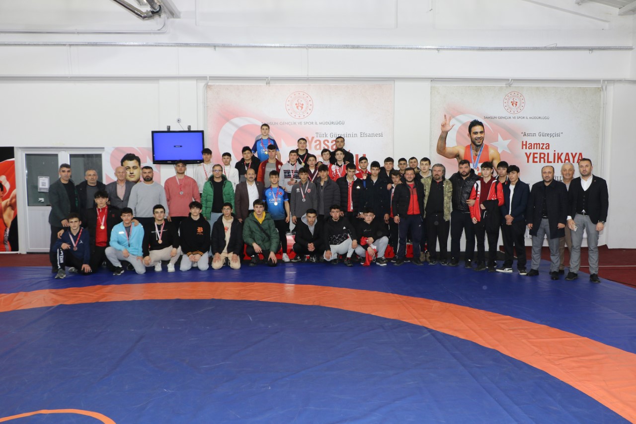 Okullar arası Güreş Gençler A Serbest İl Birinciliği müsabakaları sona erdi. 79 güreşçinin mindere çıktığı müsabakalarda dereceye girenler, grup müsabakalarında Samsun’u temsil etmeye hak kazandılar79 SPORCU YARIŞTISamsun Gençlik ve Spor İl Müdürlüğü Okul Sporları Şube Müdürlüğü tarafından düzenlenen Güreş Gençler A Serbest İl Birinciliği müsabakaları sona erdi. Canik Yaşar Doğu Güreş Salonu’nda düzenlenen il birinciliğinde 79 sporcu mindere çıktı. Yapılan karşılaşmalar sonunda kilolarında dereceye giren sporculara madalyaları takdim edildi.ÖDÜLLER VERİLDİÇekişmeli geçen müsabakalar sonunda sporculara ödüllerini Samsun Gençlik ve Spor İl Müdürümüz Feyzullah Dereci, Spor Faaliyetleri Şube Müdürü Olgay İnci, Okul Sporları Şube Müdürü İbrahim Irmak, Canik Gençlik ve Spor İlçe Müdürü Tunsel Aslankoç, Güreş İl Temsilcisi Mehmet Baysal ve eski güreş il temsilcisi Harun Erkan takdim etti. Dereceye giren güreşçiler grup müsabakalarına katılmaya hak kazandılar.Köksal ÖNER
