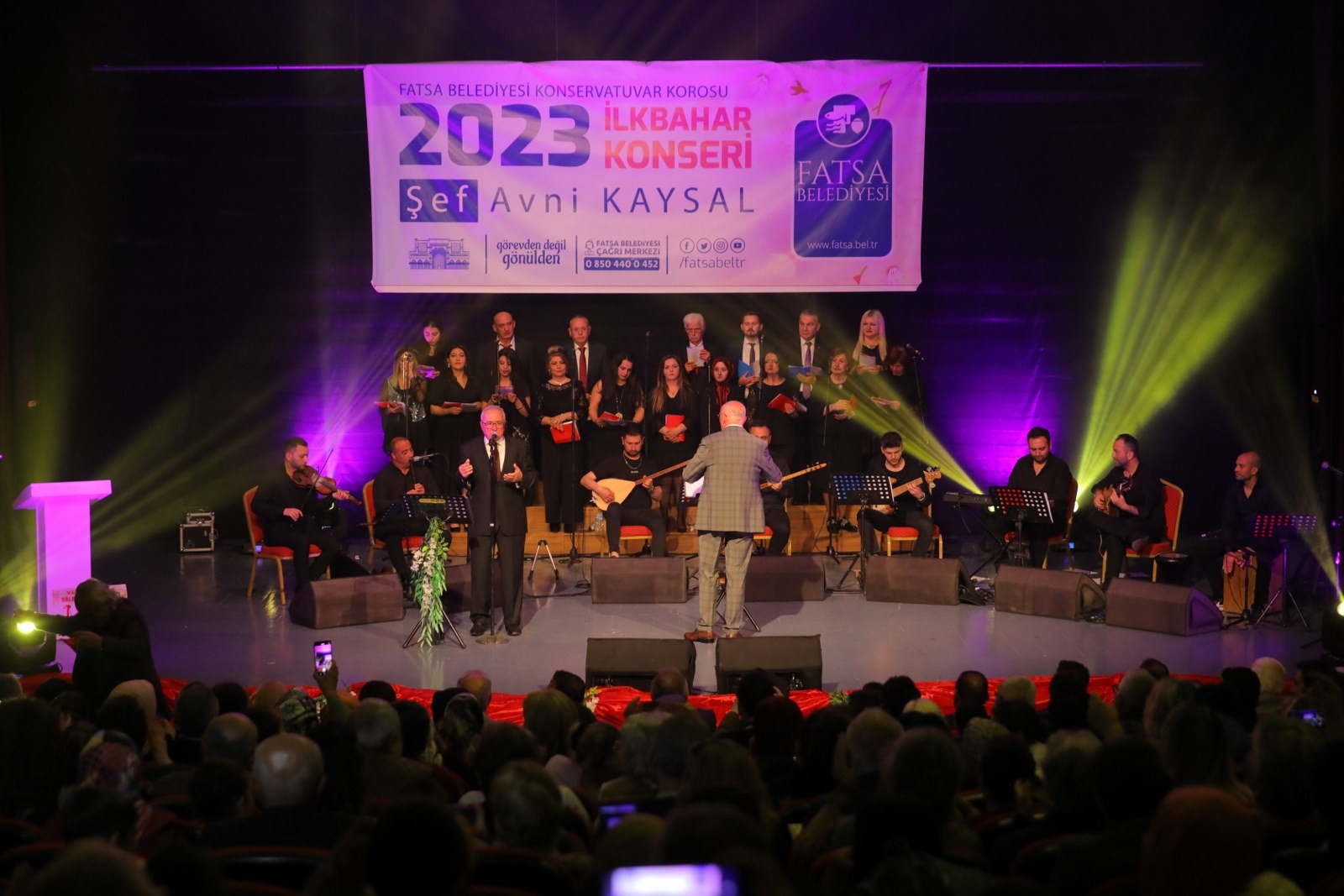 Fatsa Belediyesi Konservatuvar Korosu tarafından ‘İlkbahar Konseri’ düzenlendi. Fatsa Belediyesi Kültür ve Sanat Merkezi’nde düzenlenen ve müzikseverlerin yoğun ilgi gösterdiği konserde birbirinden güzel eserler Fatsalılar için seslendirildi.İlkbahar Konserine Fatsa Belediye Başkanı İbrahim Etem Kibar, Fatsa Belediyesi Meclis üyesi Muharrem Okyay Sarıhan, Ziraat Odası Başkanı Haydar Gürsu, Sivil Toplum Kuruluşları ve çok sayıda müzikseverler katıldı. SOLİSTLER DAVETLİLERE UNUTULMAZ BİR GECE YAŞATTILARBelediye Konservatuvar Avni Kaysal’ın şefliğini üstlendiği konserde 18 korist ve 8 kişilik saz ekibi yer aldı. Anadolu kültüründen birçok türkünün seslendirildiği konserde sanatçılar gecenin sonunda ayakta alkışlandı. Birbirinden özel türkülerin seslendirildiği konser programının ilk olarak koro ekibi tarafından, ‘Mahpushanelere Attım Postumu’ eseri seslendirirken, daha sonra sırasıyla solistler Seyhan Baran, Yüksel Kaytaz, Nihal Ece Ergün, Zekai Kışan, Havva Suğur Özkelle, Tülay Çamaş, Hüseyin Dutkan, Eylem Aydın, Hülya Hakalmaz, Tevfik Taş, Kadriye Bal, Sevgi Çakmak, Gülşah Oda, Erkan Bal, Gökçe Aslan, Hatice Bayata, Mehmet Ekiz ve Fatma Hanaylı eserlerini icra ettiler. Fatsalı Şair Dursun Ali Akınet’in yazdığı ve Selahattin Aygün’ün Bestelediği Uslan be Halil İbrahim Eserini yine Selahattin Aygün sazıyla ve sözüyle sahnede seslendirdi. Gecenin finalinde ise Sözleri Şef Avni Kaysal’a, Bestesi Solist Yüksel Kaytaz’a ait olan Telli Gelin ve Haydi de Haydi Adlı iki güzel esere katılımcılar da eşlik ederek birlikte seslendirdiler. ‘KÜLTÜREL VE SANATSAL VİZYONUNA KATKI VERİYORUZ’Konserin sonunda solistlere çiçek takdiminde bulunan ve seslendirdiği türküler için kendilerine teşekkür eden Fatsa Belediye Başkanı İbrahim Etem Kibar, “Fatsa Belediye Konservatuvarımızın birbirinden değerli korosu Şef Avni Kaysal hocamızın uzun soluklu çalışmalarıyla bu akşam çok keyifli bir zaman geçirdik. Ben öncelikle bu güzel akşamda buradaki emeği yalnız bırakmadığınız için değerli misafirlerimize teşekkür ederim ve başta kıymetli hocamız Avni Kaysal başta olmak üzere koromuzun her bir değerine ayrı ayrı şükranlarımı, minnetlerimi iletmek istiyorum. Tabi biz burada iki saatlik bir zaman geçirdik fakat bu organizasyonu belki haftalar, belki aylar, belki yıllar öncesinden biriken emeklerle bugünlere taşındığını görüyoruz. Yeni bir konser için Avni Kaysal hocam ne zaman hazırız derse biz her zaman salonu doldurmaya hazırız, çok teşekkür ederim” dedi.