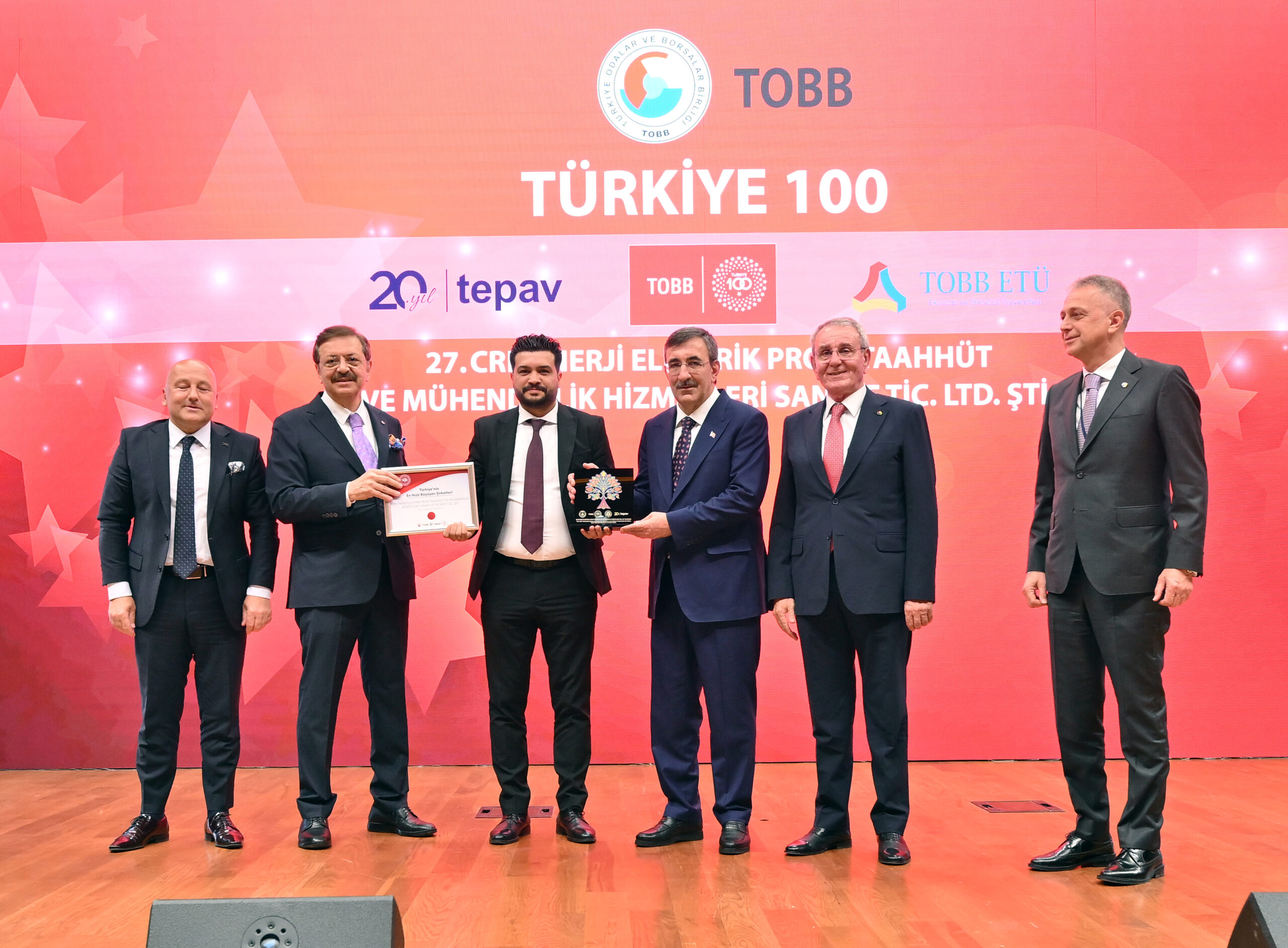 Samsun Ticaret ve Sanayi Odası (STSO) Yönetim Kurulu Başkanı Salih Zeki Murzioğlu, Türkiye Odalar ve Borsalar Birliği (TOBB) öncülüğünde, Türkiye Ekonomi Politikaları Araştırma Vakfı (TEPAV) ve TOBB Ekonomi ve Teknoloji Üniversitesi (ETÜ) iş birliğinde şirketlerin 2021-2023 arası iki yıllık ciro artışı dikkate alınarak yapılan ‘Türkiye’nin En Hızlı Büyüyen 100 Şirketi’ yarışmasında yüzde 1493 büyüme başarısı göstererek 27’inci sırada yer alan CRK Enerji Elektrik Proje Taahhüt ve Mühendislik Hizmetleri Sanayi ve Tic. Ltd. Şti.’yi ziyaret etti. Samsun TSO Yönetim Kurulu Başkanı Salih Zeki Murzioğlu, geçtiğimiz günlerde düzenlenen törenle plaketini Cumhurbaşkanı Yardımcısı Cevdet Yılmaz ve TOBB Başkanı M. Rifat Hisarcıklıoğlu’nun elinden alan CRK Enerji’nin Kurucusu ve Yönetim Kurulu Başkanı Cumhur Kaya’yı bir kez daha kutlayarak, Atatürk Anıtı takdiminde bulundu.