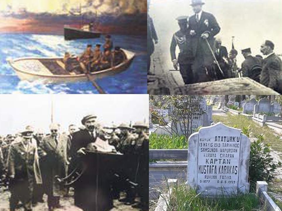 Gazi Mustafa Kemal Atatürk, Türkiye Cumhuriyeti’ni kurduktan 12 yıl sonra 1931 yılında Samsun’u Cumhurbaşkanı olarak yeniden ziyaret eder. Samsun açıklarında Gazi’nin talebi üzerine yine Kaptan Mustafa tarafından karşılanarak kıyıya çıkarılır. Milli Mücadele kahramanları arasında yer alan Kaptan Mustafa Karakaş’ın mezarı, Asri Mezarlığı’nda bulunuyor.