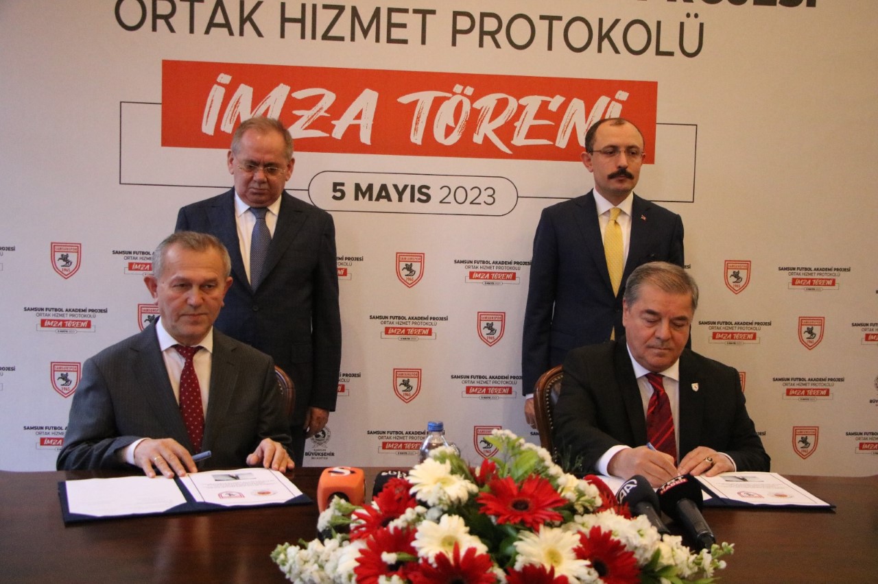 Başkan Yüksel Yıldırım’ın büyük yatırımlar yaptığı Mustafa Kemal Erkanat Batıpark Spor Tesisleri’nin alanı 20 yıllığına önce Samsun Büyükşehir Belediyesi’ne, Samsun Büyükşehir Belediyesinden de 20 yıllığına Kulübe bedelsiz bir şekilde tahsis edildi. Mustafa Kemal Erkanat Batıpark Spor Tesislerinin bulunduğu alanın 20 yıllığına kulübe tahsisini sağlayan protokol, Samsunspor Futbol Kulübü A.Ş. Başkan Vekili ve İcra Kurulu Üyemiz Veysel Bilen ile Samsun Büyükşehir Belediyesi Genel Sekreter Vekili Metin Köksal tarafından imzalandı.‘BU TESİSLERDEN NİCE YENİ FUTBOLCULAR YETİŞECEK’İmza töreni sonrası konuşan Ticaret Bakanı Mehmet Muş, “Yılport Samsunspor’un altyapı tesisleri konusu önemli bir konuydu. Bugün atılan imzalarla bu da çözüme kavuşturulmuş oldu. Bugünden itibaren tesislerin yapıldığı alan 20 yıllığına Samsunspor Kulübü’ne tahsisini gerçekleştirmiş oluyoruz. İnşallah nice başarılar, antrenmanlar yapılmasına imkan sağlayacak bu tesislerden nice yeni futbolcular yetişecektir. Hem Türk futboluna hem Samsun’a önemli başarılar ve futbolcular buradan kazandırılacaktır. Samsunspor’un da Süper Lig’de önemli başarılarını elde ettiği, çalışmalarını yürüttüğü bu tesislerde bizler de izlemiş olacağız. Önümüzdeki 20 yılla alakalı konu kapanmıştır” dedi.‘OYUNCULAR AÇISINDAN YENİ BİR ÇIĞIR AÇILMIŞ OLACAK’Kulüp olarak yer tahsisinden dolayı çok mutlu olduklarını ifade eden Samsunspor Futbol Kulübü A.Ş. Başkan Vekili ve İcra Kurulu Üyesi Veysel Bilen, “Attığımız bu imzalar ile Samsunspor’a yetişecek oyuncular açısından yeni bir çığır açılmış olacak. Bu vesile ile Cumhurbaşkanımız Sayın Recep Tayyip Erdoğan’a, Gençlik ve Spor Bakanımız Sayın Mehmet Muharrem Kasapoğlu’na, çok emeği geçen Ticaret Bakanımız Sayın Mehmet Muş’a ve her zaman yanımızda olan, yer tesisinin neticelenmesinde payı olan Samsun Büyükşehir Belediye Başkanımız Sayın Mustafa Demir ile AK Parti Samsun Milletvekilimiz Sayın Fuat Köktaş’a şükranlarımızı sunuyoruz” diye konuştu.Atılan imzalarından ardından Yılport Samsunspor’a Süper Lig’de başarılar dileyen Samsun Büyükşehir Belediye Başkanı Mustafa Demir ise, yer tahsisinin Samsunspor’a hayırlı olmasını temenni etti. Protokol imza törenine ayrıca AK Parti Samsun Milletvekili Fuat Köktaş, Samsunspor Futbol Kulübü A.Ş. Genel Müdürü ve İcra Kurulu Üyesi Soner Soykan ile İcra Kurulu Üyesi Suat Çakır da katıldı.Köksal ÖNER