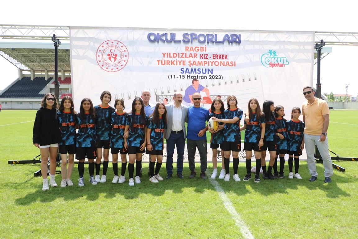 Samsun Gençlik ve Spor İl Müdürlüğümüz tarafından organize edilen Okul Sporları Ragbi Yıldızlar Türkiye Şampiyonası bugün Bafra İlçe Stadı’nda yapılan açılış seremonisi ile başladı.Bafra İlçe Stadı’nda 11-15 Haziran 2023 tarihleri arasında düzenlenen şampiyonaya 15 ilden 24 kız takımı 480 sporcu, 12 ilden 17 erkek takımı 340 sporcu katıldı. Açılış seremonisi saygı duruşu ve İstiklal Marşı’nın okunması ile başladı. Toplamda 820 sporcunun sahaya çıkacağı Türkiye Şampiyonası katılan takımlara başarı dileyen Samsun Gençlik ve Spor İl Müdürü Feyzullah Dereci, bine yakın sporcuyu Samsun’da ağırladıkları için mutlu olduklarını söyledi.
