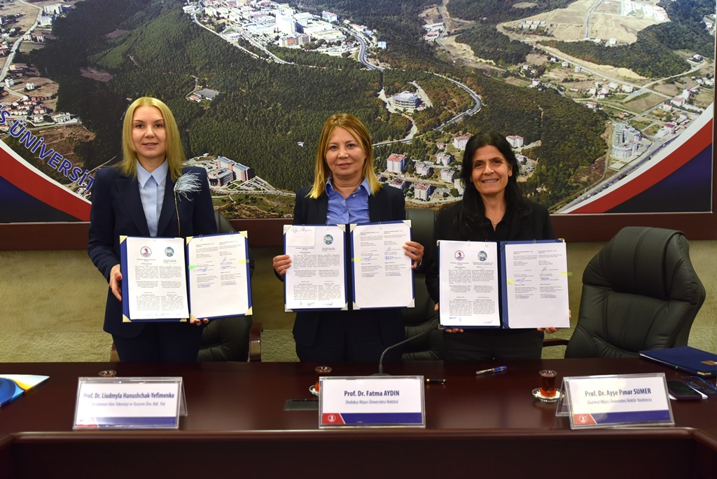 OMÜ Rektörlüğünde imzalanan protokol metnine; OMÜ Rektörü Prof. Dr. Fatma Aydın ile KNUTD Rektör Yardımcısı Prof. Dr. Liudmyla Hanushchak-Yefimenko imza attı.