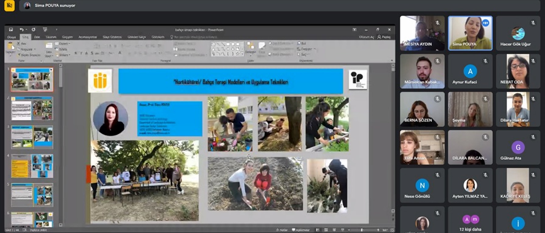Ondokuz Mayıs Üniversitesi (OMÜ) Sağlık Bilimleri Fakültesi Hemşirelik Bölümü tarafından çevrimiçi olarak düzenlenen ‘Hortikültürel Uygulamalar Kursu’ faklı üniversite ve hastanelerden öğretim elemanı, hemşire ve öğrencilerin katılımıyla gerçekleşti.TERAPÖTİK PEYZAJ’ BAŞLIKLI SUNUMUNU GERÇEKLEŞTİRDİKursun açılış konuşması Doç. Dr. Hacer Gök Uğur tarafından yapıldı. Açılış konuşmalarının ardından Dr. Öğr. Üyesi Şeyma Şengür ‘İnsan-Sağlık-Doğa Temelinde Terapötik Peyzaj’ başlıklı sunumunu gerçekleştirdi. Dr. Öğr. Üyesi Şengör, sunumunda şifa bahçelerinden ve terapi bahçelerinde uygulanacak asarım önerilerinden bahsetti.BAHÇECİLİK FAALİYETLERİNE KATILABİLECEĞİNE DEĞİNDİKurs programı Doç. Dr. Hacer Gök Uğur’un ‘Hortikültürel Uygulamaların Sağlık Üzerine Etkisi’ başlıklı sunumu ile devam etti. Doç. Dr. Uğur, sunumunda bahçecilik faaliyetlerinin nerelerde uygulanabileceğine, hangi grupların bahçecilik faaliyetlerine katılabileceğine değindi. Konuşmaları sırasında iyileştirici ortamların neler olduğuna ve özelliklerine yer veren Uğur, Hortikültürel terapi uygulamaları ile ilgili yapılmış çalışmaları katılımcılar ile paylaştı.HORTİKÜLTÜREL TERAPİ MODELLERİNDEN BAHSETTİOnline kursun devamında Doç. Dr. Sima Pouya ‘Hortikültürel Terapi Modelleri ve Uygulama Teknikleri’ başlıklı sunumunda bahçe terapisinin faydalarından, hortikültürel terapi modellerinden bahsetti. Doç. Dr. Pouya konuşması esnasında bahçe terapisinde belgelemenin önemine vurgu yaptı.UYGULAMA ÖRNEĞİ’ BAŞLIKLI SUNUMU İLE KURS DEVAM ETTİUzman Hemşire Mürselcan Kabakcı ise ‘Hortikültürel Uygulama Örneği’ başlıklı sunumu ile kurs devam etti. Uzman Hemşire Kabakcı, uygulamış oldukları uygulama örneği ile ilgili bilgilendirici resim ve videoyu kursiyerler ile paylaştı.FAALİYETLERİNİN HEMŞİRELİK ALANINDA KULLANILABİLECEKHortikültürel Uygulamalar Kursu Prof. Dr. İlknur Aydın Avci’nin kapanış konuşmaları ile sona erdi. Prof. Dr. Avci, kapanış konuşmalarında bahçecilik faaliyetlerinin hemşirelik alanında kullanılabilecek bir yöntem olduğunu, sağlık bakım çalışmalarına olumlu katkılar sağlayabileceğini ifade etti.Köksal ÖNER