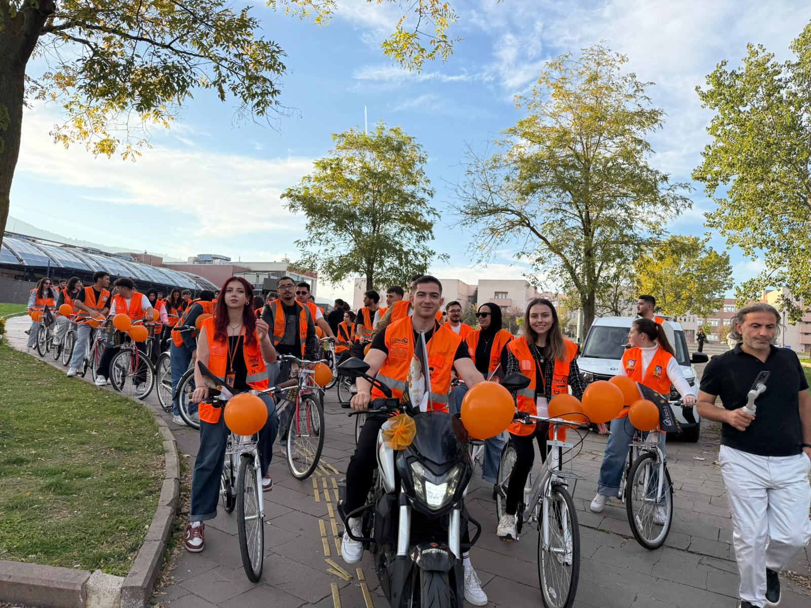 2-8 Kasım Lösemili Çocuklar Haftası kapsamında düzenlenen “Umut İçin Sür” projesinde, danışman hocası Doç. Dr. Ayşegül Kuş ve Fayda Proje personellerinin desteğiyle öğrenciler, üniversite kampüsünde bisiklet turu gerçekleştirdi. Yaşam Merkezi’nden Diş Hekimliği Fakültesi’ne kadar uzanan parkurda katılımcılar, sağlıklı yaşam bilincine dikkat çekerken kampüsü turuncu renklere bürüdü.