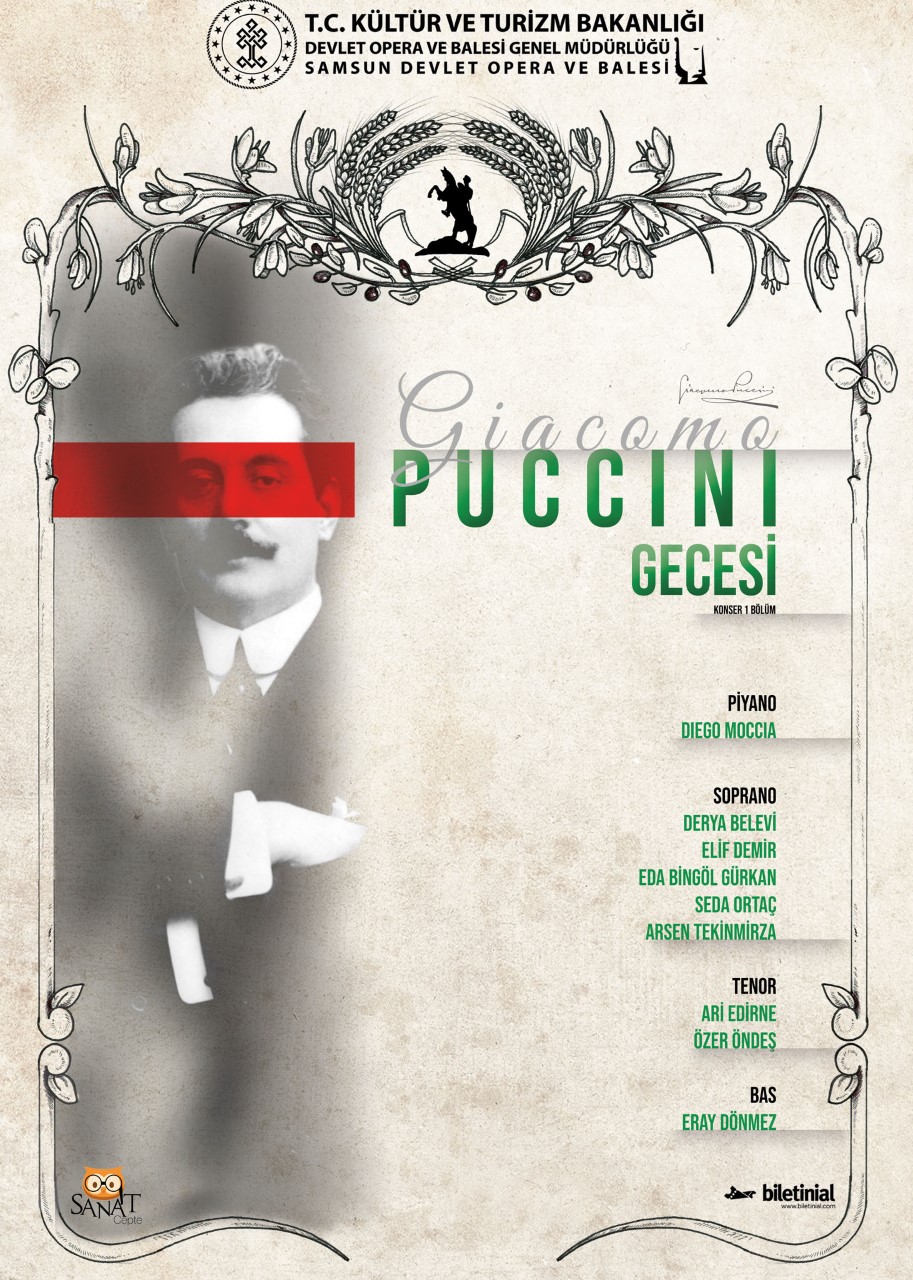 Samsun Devlet Opera ve Balesi, efsanevi İtalyan besteci Giacomo Puccini’nin “Tosca”, “Madama Butterfly”, “La Bohème” gibi ünlü opera eserlerinden seçilmiş arya ve düetlerden oluşan “Puccini Gecesi” konseriyle 15 Mayıs 2023 Pazartesi akşamı operaseverlerle buluşacak.Diego Moccia’nın piyanosuyla hayat vereceği konserde Derya Belevi, Elif Demir, Eda Bingöl Gürkan, Seda Ortaç, Arsen Tekinmirza soprano solistler olarak yer alırken, tenor solistler Ari Edirne ve Özer Öndeş ile bas solist Eray Dönmez, Puccini’nin arya ve düetlerini seslendirecekler.GECEDE MUHTEŞEM ESERLER YER ALAÇAKBestelediği eserlerle dünya opera tarihine muhteşem eserler kazandıran ve adını sonsuzluğa yazdıran İtalyan besteci Giacomo Puccini’nin “Turandot”, “La Rondine” “Gianni Schicchi” “Tosca”, “Madama Butterfly”, “La Bohème” operalarından sevilen arya ve düetlerin yer aldığı “Puccini Gecesi”, 15 Mayıs 2023 Pazartesi saat 20.00’de Zehra Yıldız Salonu’nda besteciyi ve sevenlerini selamlayacak.“Puccini Gecesi” konserinin biletleri, biletinial internet sitesinden ve Samsun Devlet Opera ve Balesi gişesinden alınabilir.Köksal ÖNER![]()