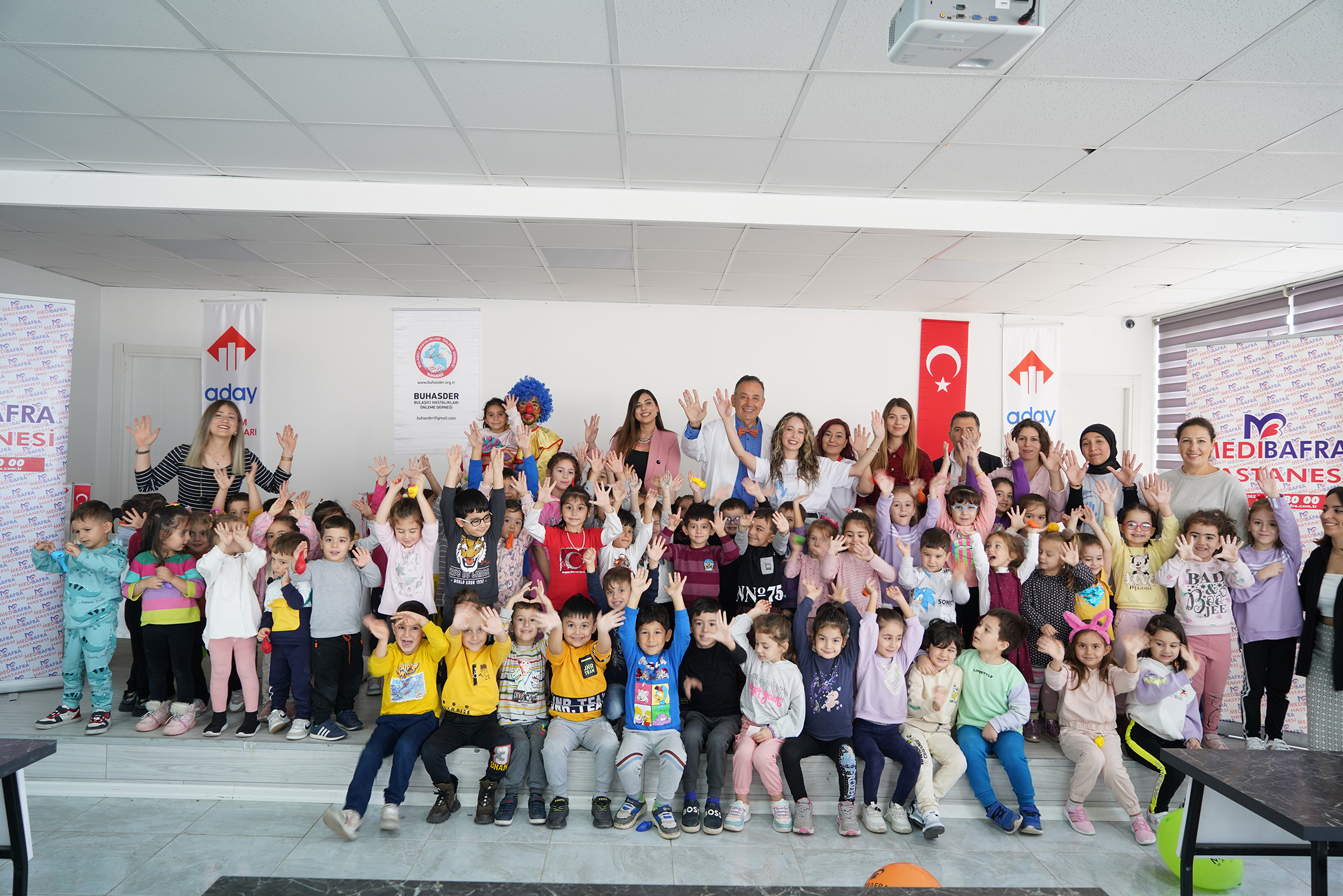 Çocukları el hijyeni konusunda bilinçlendiren Enfeksiyon Hastalıkları Uzmanı Dr. Teoman KAYNAR, çocukların ellerini doğru yıkamaları, hastalık oluşumu riskini 10 kata kadar azaltabiliyor. Onların, el yıkama alışkanlığını erken yaşta kazanmaları ve ömürleri boyunca sürdürmeleri için el yıkama tekniklerini çocuklara palyaço eşliğinde eğlenceli bir şekilde anlattı.