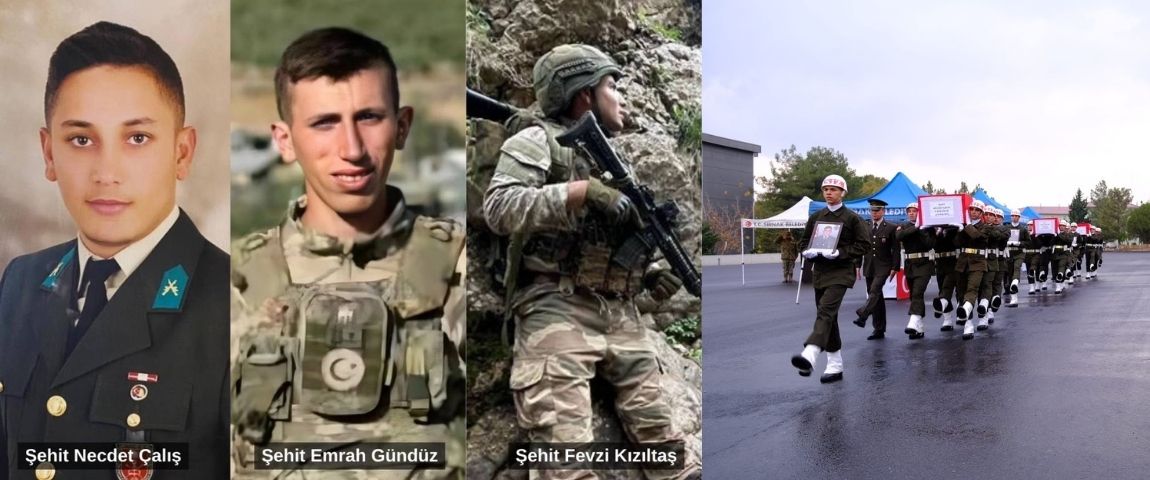 Pençe-Kilit Operasyonu bölgesinde teröristlerce düzenlenen saldırıda şehit olan Piyade Astsubay Üstçavuş Necdet Çalış, Piyade Sözleşmeli Er Emrah Gündüz ve Piyade Sözleşmeli Er Fevzi Kızıltaş için Şırnak’ta tören düzenlendi.DUALARLA MEMLEKETLERİNE UĞURLANDILARŞırnak 23’üncü Piyade Tümen Komutanlığında gerçekleştirilen törende, şehitler Çalış, Gündüz ve Kızıltaş’ın Türk bayrağına sarılı naaşı alana getirilerek katafalka konuldu, saygı duruşunda bulunuldu, şehitlerin öz geçmişleri okundu. Kur’an-ı Kerim tilaveti ve İl Müftü Yardımcısı İbrahim Sancar’ın okuduğu duanın ardından şehitlerin cenazesi, ambulansla Şırnak Şerafettin Elçi Havalimanı’na götürüldü. Şehit Necdet Çalış’ın naaşı Adana’ya, Emrah Gündüz’ün cenazesi Erzincan’a, Fevzi Kızıltaş’ın naaşı ise Şanlıurfa’ya hava yolu ile uğurlandı. Basına kapalı gerçekleştirilen törene, Şırnak Valisi Cevdet Atay, İl Jandarma Komutanı Jandarma Tümgeneral Murat Bulut Çakırsöğüt, Jandarma Tugay Komutanı Jandarma Tuğgeneral Mevlüt Dirim, Cumhuriyet Başsavcısı Hayrullah Şahin, İl Emniyet Müdürü Cemal Dalman, Türkiye Harp Malulü Gaziler Şehit Dul ve Yetimleri Derneği Bafra Şubesi ve ayrıca Samsun Polis Okulu Mezunları Emeklileri ve Çalışanları Sosyal Dayanışma ve Yardımlaşma Derneği (SAMPOMDER) Genel Merkezi Basın Sözcüsü Köksal Öner, Vali Yardımcısı Ahmet Kavanoz, Belediye Başkan Vekili Ayten Altürk ve askerler katıldı. Millî Savunma Bakanlığı, Pençe-Kilit Operasyonu bölgesinde bölücü terör örgütü mensuplarınca dün düzenlenen saldırı sonucu Piyade Sözleşmeli Er Fevzi Kızıltaş, Piyade Astsubay Üstçavuş Necdet Çalış ve Piyade Sözleşmeli Er Emrah Gündüz’ün şehit olduğunu, 1 askerin yaralandığını duyurmuştu.Köksal ÖNER