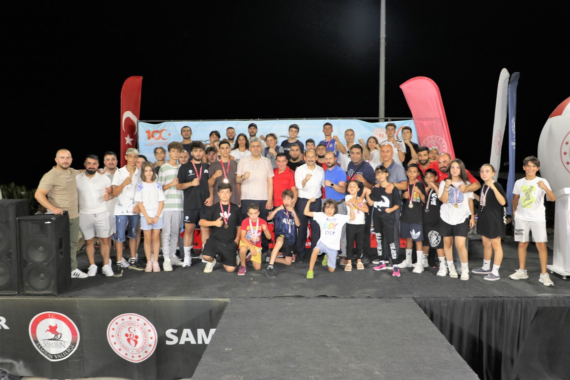 Cumhuriyetin 100’üncü Yılı etkinlikleri kapsamında Atakum ilçesi Çobanlı İskelesinde düzenlenen Açık Hava Spor Şenliği’nde boks heyecanı yaşandı.MÜSABAKALAR ÇEKİŞMELİ GEÇTİCumhuriyetin 100’üncü Yılı etkinlikleri kapsamında gençlerimizin sporla daha fazla ilgilenmesi ve sporu gündelik hayatlarının bir parçası haline getirmelerine katkı sağlamak amacıyla Atakum ilçesi Çobanlı İskelesinde düzenlenen Açık Hava Spor Şenliği’nde 24 Ağustos 2023 Perşembe günü boks heyecanı yaşandı. Kurulan ringe çıkan boksörler, madalya almak için yumruklarını attı. Büyük bir çekişmeye sahne olan müsabakaların sonunda kilolarında dereceye giren sporculara düzenlenen törenle madalyaları takdim edildi.İL MÜDÜR Z TEBRİK ETTİÖnemli bir boks turnuvasının altına imza atıldığını dile getiren Samsun Gençlik ve Spor İl Müdürü Feyzullah Dereci, “Bu sene bazı branşları es geçtik ama önümüzdeki sene nasip olursa Ağustos ayı içerisinde kapsamlı bir spor şenliği olacak. Katılım çok iyiydi. Öncelikle sporcularımıza, antrenörlerimize ve kıymetli Samsunlulara ve ayrıca Samsun Büyükşehir Belediyemiz ile birlikte organizasyonu gerçekleştirdik. Belediye Başkanımız Sayın Mustafa Demir’e de teşekkür ediyorum.” diye konuştu. Boks İl Temsilcisi Nihat Bilir de madalya kazanan sporcuları tebrik ederek, Samsun Gençlik ve Spor İl Müdürü Feyzullah Dereci’ye, organizasyon için teşekkür etti.Köksal ÖNER