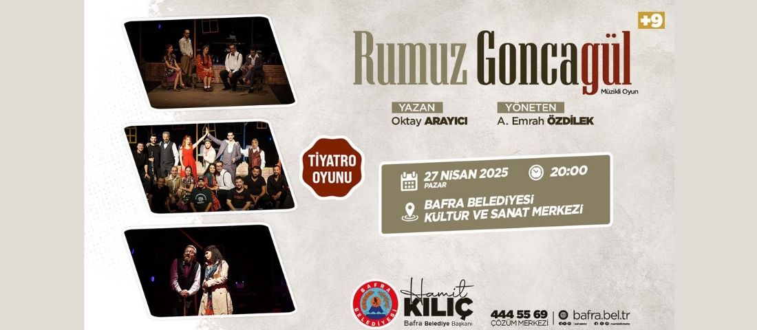 Kültür ve Sosyal İşler Müdürlüğü ve Ordu Büyükşehir Belediyesi Karadeniz Tiyatrosu (OBBKT) işbirliği ile Türk tiyatrosunun önemli yazarlarından Oktay Arayıcı’nın kaleme aldığı “Rumuz Goncagül” adlı müzikli oyun A. Emrah Özdilek’in yönetmenliğinde Bafralılar ile buluşturulacak.