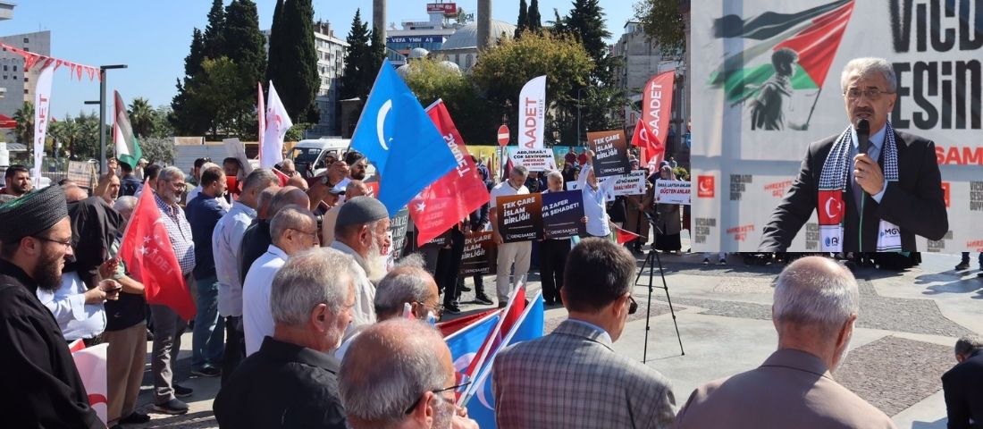 Saadet Partisi Samsun İl Başkanlığı, İsrail’in yaptığı soykırım ve katliamlara tepki göstermek amacıyla Cuma namazından sonra Saathane Meydanında
