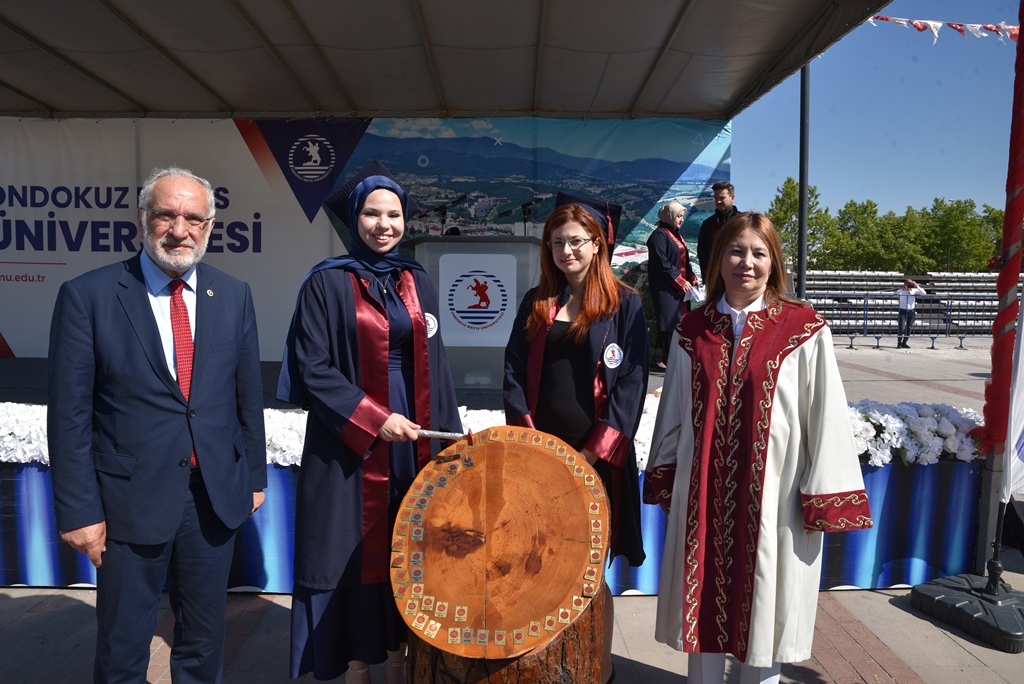 Mezun olan öğrenci ve ailelerini tebrik eden Ondokuz Mayıs Üniversitesi (OMÜ) Rektörü Prof. Dr. Fatma Aydın “Hayata emin adımlarla atılmak için ‘mezun’ sıfatı taşımak gerek şarttır ama yeter şart niteliği taşımaz. Bireyin mesleki yetkinliği yanında kişisel özelliklerinin de geliştirilmesi, ufkunun derinleşmesi, yüksek vasıflar edinebilmesi artık akademik süreçlerin ana hedefleri hâline gelmiştir. Ülkemizin aydınlık yarınlarına omuz verecek nesillerin, geleneği geleceğe taşıyıp ilmin rehberliğinden şaşmadan yol alırken, arkalarında koskoca bir tarihin yattığını bilmeleri gerekir. Ondokuz Mayıs Üniversitesi ailesi olarak yarım asırlık tecrübemizle ülkemizin en köklü yükseköğrenim kurumlarından biri olmanın ayrıcalığını yaşamaktayız. Verdiğimiz nitelikli eğitimin yanı sıra sunduğumuz bilimsel, kültürel ve sosyal imkânlarla öğrencilerimizi rekabetçi fertler olarak geleceğe hazırlamaktayız. Çünkü biz, eğitimi sadece bireysel başarıya değil, ortak geleceğimize yapılan bir yatırım olarak görüyoruz. Artık hayat yolculuğunda yeni bir eşiğin başındasınız. Üzerinizde taşıyacağınız beyaz önlükler gibi bembeyaz bir sayfa sizleri beklemekte. Yaşayarak biliyorum ki zorlu bir mesleğin mensupları olacaksınız. Mesleğinizi icra ederken hayata tutunmalarına yardımcı olduklarınızın duaları, en büyük ruh katığınız olsun.” diye konuştu.