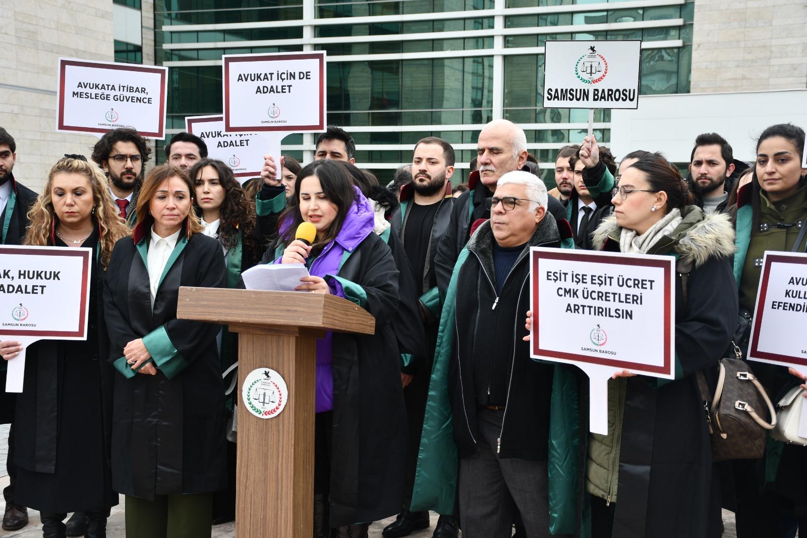 Samsun Adliyesi önünde bir araya gelen avukatlar, tarifenin gecikmeli yayınlanması ile yapılan yüzde 40’lık artışı eleştirdi. Burada avukatlar adına basın açıklamasında bulunan Samsun Barosu Yönetim Kurulu Üyesi ve CMK Komisyon Başkanı Av. Tuğçe Karadeniz, yapılan artışın tüm avukatları hayal kırıklığına uğrattığını belirtti. Başkanı Av. Tuğçe. Karadeniz, “Vatandaşların hakları için mücadele eden ve güveni bir nebze olsun diri tutmaya çalışan avukatlara böylesi düşük tutarların teklifi dahi kabul edilebilir değildir.” dedi