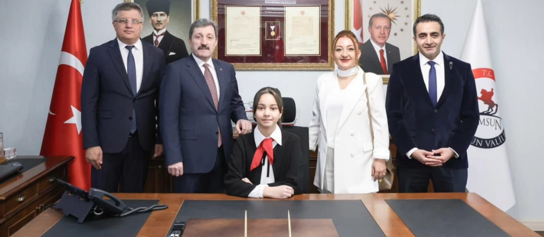 23 Nisan kutlamaları kapsamında İlkadım Atatürk Ortaokulu öğrencisi Diclenur Karahisar, Samsun Valisi Orhan Tavlı’yı ziyaret ederek temsili olarak valilik makamını devraldı