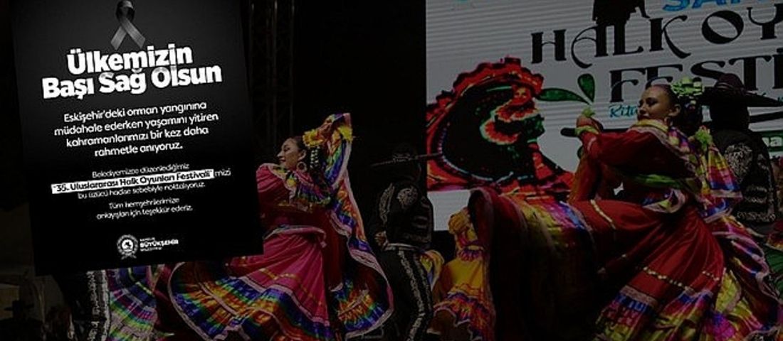 Samsun’da 13 ülkenin katılımı ile düzenlenen 35’inci Uluslararası Halk Dansları Festivali’nin, Eskişehir’de yaşanan orman yangınında, yangını söndürme çalışmaları sırasında 10 kişinin yaşamını yitirmesi sebebiyle iptal edildiği duyuruldu.