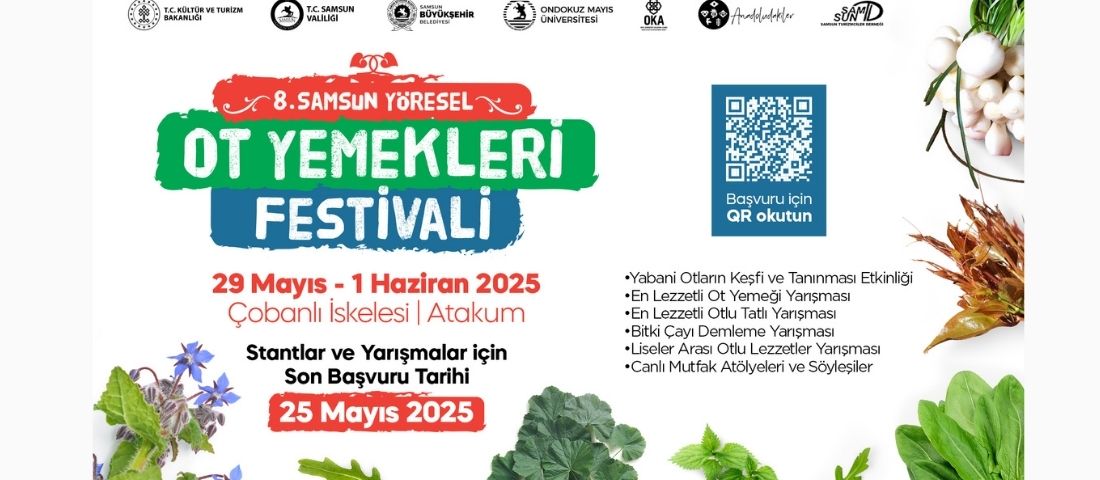 Samsun Büyükşehir Belediyesince şehrin gastronomi turizmindeki payını artırmak ve geleneksel lezzetlerini tanıtmak amacı ile düzenlenen 8’inci Samsun Yöresel Ot Yemekleri Festivali, 29 Mayıs’ta başlıyor. Atakum ilçesinde Çobanlı İskelesi’ndeki alanda 29 Mayıs- 1 Haziran tarihlerinde yapılacak ve 4 gün sürecek festival için başvurular devam ediyor.