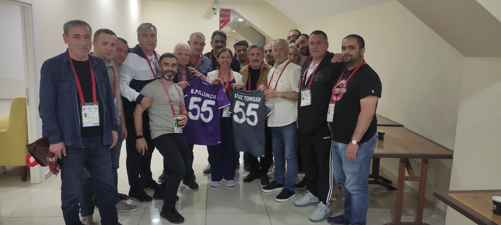 Samsun 19 Mayıs Gazeteciler Cemiyeti ve TSYD Samsun Şubesi’nden, A Milli Futbol Takımımızın 2-0 kazandığı Galler maçı sonrası TSYD heyetine Samsunspor forması hediye edildiSamsun 19 Mayıs Gazeteciler Cemiyeti Başkanı Yusuf Ziya Çakır, Türkiye Spor Yazarları Derneği(TSYD) Samsun Şube BAşkanı Avni Demir ve her 2 derneğin yönetim kurulu üyeleri, A Milli Futbol Takımı’nın Galler ile oynadığı ve 2-0 kazandığı maç için Samsun’a gelen TSYD yetkililerine Samsunspor forması hediye etti.BİRGÜL PULLUKÇU’YU ‘EMEK’ TEŞEKKÜRÜTSYD Organizasyon Sorumlusu Birgül Pullukçu’ya emekleri ve organizasyona verdiği büyük destekten dolayı teşekkür eden 19 Mayıs Gazeteciler Cemiyeti Başkanı Yusuf Ziya Çakır, “Samsun mükemmel bir organizasyona imza attı. Biz de bunun anısı olarak TSYD heyetine günün anısına forma hediye ettik. Samsun, Milli maçla güzel bir sınavdan geçti. İnşallah ilerleyen dönemde de A Milli takımımızı Samsun’da ağırlarız. Bu mükemmel organizasyonda çok büyük emekleri olan değerli TSYD yöneticisi Birgül Pullukçu hanımefendiye de meslektaşlarım ve tüm Samsun halkı adına teşekkür ediyorum” dedi.‘SAMSUN’DA UNUTULMAZ ANLAR YAŞADIK’TSYD Başkanı Oğuz Tongsir’e Samsunspor’un Atatürklü forması, kendisine kadına şiddeti önleme de farkındalık yaratmak amacıyla tasarlanan Samsunspor mor forması hediye edilen Birgül Pullukçu ise, “Başkanımız Oğuz Tongsir adına teslim aldığım Atatürklü forma ve bana hediye edilen mor formanın anlamı çok büyük. Bu jestten dolayı Samsunlu gazeteci dostlarıma, Cemiyetimizin ve TSYD şubemizin değerli yöneticilerine çok teşekkür ediyorum. Samsunlular’a da gösterdikleri misafirperverlik ve Milli Takım’a verdikleri muhteşem destek nedeniyle teşekkür ediyorum. Samsun’da olmak harikaydı. Unutulmaz anlarla geri dönüyoruz” diye konuştu.Köksal ÖNER