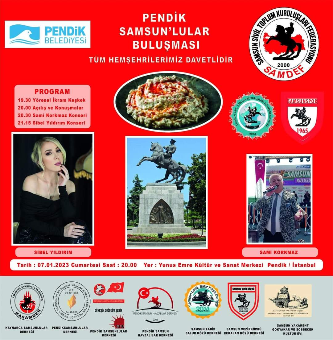 Samdef ile Pendik Belediyesinin Birlikte organize ettikleri “HEMŞEHRİ BULUŞMALARI” temalı program kapsamında Samsunlular,Pendik Yunus Emre Kültür ve Sanat Merkezinde buluşacak.
