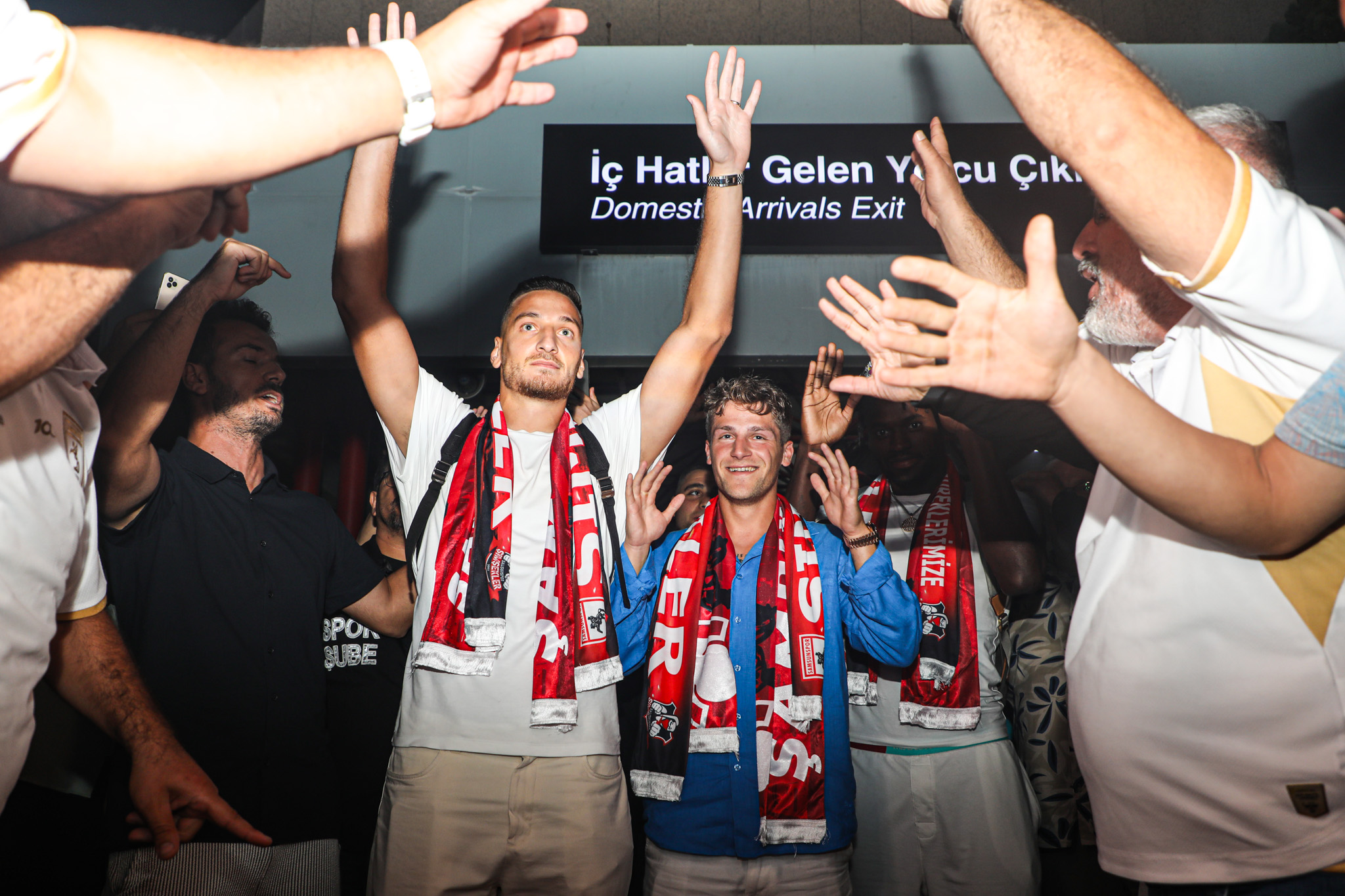Yılport Samsunspor’un yeni transferleri 24 yaşındaki orta saha oyuncusu Carlo Holse, 26 yaşındaki forvet Landry Dimata ve 27 yaşındaki santrafor Ercan Kara, İstanbul’da atılan imzalar sonrası özel uçakla Samsun’a geldi.BÜYÜK BİR COŞKUYLA KARŞILADIKırmızı beyazlı siyahlı ekibin taraftarlar Samsun Çarşamba Havalimanı’nda yeni transferlerimiz Carlo Holse, Landry Dimata ve Ercan Kara’yı büyük bir coşkuyla karşıladı. Yapılan meşale şovunun ardından yeni transferler Nuri Asan Tesisleri’ni gezdi.Köksal ÖNER