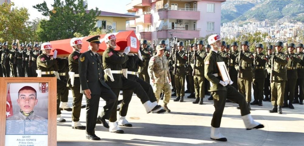 Pençe-Kilit Operasyonu bölgesinde, bölücü terör örgütü mensuplarıyla girilen çatışmada yaralanan ve tedavi gördüğü hastanede şehit olan kahraman Mehmetçiğimiz Piyade Sözleşmeli Onbaşı Alican Güneş için cenaze töreni düzenlendi.Askeri uçakla Kahramanmaraş Havalimanı’na getirilen Şehit Piyade Sözleşmeli Onbaşı. Alican Güneş, baba ocağına götürülerek helallik alınmasının ardından düzenlenen cenaze törenine müteakip dua ve tekbirlerle ebediyete uğurlandı.KAHRAMANMARAŞ ŞEHİDİNİ YALNIZ BIRAKMADITörene, şehidimizin ailesi ve yakınlarının yanı sıra, Çalışma ve Sosyal Güvenlik Bakan Yardımcısı Ahmet Aydın, Kahramanmaraş Valisi Mükerrem Ünlüer, Garnizon Komutanı Tuğgeneral Emin Mehmet Terzioğlu, AK Parti Kahramanmaraş Milletvekili Ömer Oruç,AK Parti Kahramanmaraş Milletvekili Bilal Debgici, Büyükşehir Belediye Başkanı Hayrettin Güngör, Kahramanmaraş İl Jandarma Komutanı Jandarma Tuğgeneral Gökhan İnan, Türkiye Harp Malulü Gaziler Şehit Dul ve Yetimleri Derneği Bafra Şubesi ve ayrıca Samsun Polis Okulu Mezunları Emeklileri ve Çalışanları Sosyal Dayanışma ve Yardımlaşma Derneği (SAMPOMDER) Genel Merkezi Basın Sözcüsü Köksal Öner,İlçe Kaymakamları Belediye Başkanları, kamu kurum ve kuruluş müdürleri, sivil toplum kuruluşu temsilcileri, siyasi parti temsilcileri ve vatandaşlarımız katıldı.DEFİN SONRASI ŞEHİDİN AİLESİNE TESLİM EDİLDİKahramanmaraş İl Müftüsü Mustafa Tekin tarafından kıldırılan cenaze namazının ardından Piyade Sözleşmeli Onbaşı Alican Güneş, Şeyh Adil Mezarlığı’nda son yolculuğuna dualarla uğurlandı. Defin sonrası şehidimizin fotoğrafı ve Türk Bayrağı, Çalışma ve Sosyal Güvenlik Bakan Yardımcısı Ahmet Aydın ve Kahramanmaraş Valisi Mükerrem Ünlüer tarafından şehidin ailesine teslim edildi. Çalışma ve Sosyal Güvenlik Bakan Yardımcısı Ahmet Aydın,Vali Mükerrem Ünlüer, Milletvekilimiz ve protokol üyeleri, cenaze töreni sonrası şehidimizin ailesine başsağlığı ve sabır dileklerini iletti.Köksal ÖNER