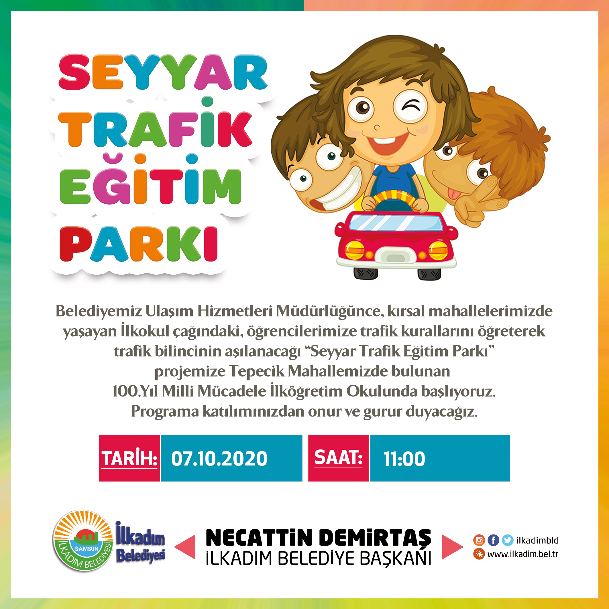 Belediyemiz Ulaşım Hizmetleri Müdürlüğünce, kırsal mahallelerimizde yaşayan ilkokul çağındaki, öğrencilerimize trafik kurallarını öğreterek trafik bilincinin aşılanacağı “Seyyar Trafik Eğitim Parkı” projemize Tepecik Mahallemizde bulunan 100.Yıl Milli Mücadele İlköğretim Okulunda başlıyoruz.7 Ekim Perşembe günü Saat:11.00 düzenleyeceğimiz programa katılımınızdan onur ve gurur duyacağız.