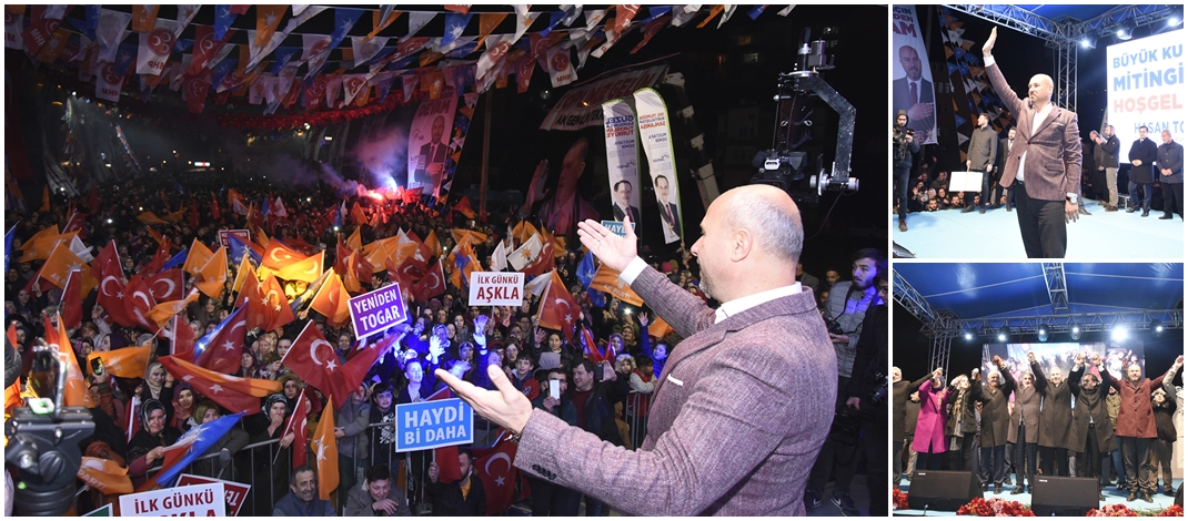 Cumhur İttifakı AK Parti Tekkeköy Belediye Başkan Adayı Hasan Togar, Tekkeköy sevdasının başka hiçbir şeye benzemediğini bu akşam herkesin bir kez daha gördüğünü vurgulayarak, “ Bizde sevmek, bizde çalışmak, bizde mücadele etmek, bize sevdasına sahip çıkmak başkadır. Bu akşam burada bunu yedi düvele gösterdiniz. Herkese Tekkeköy ne demek anlatınız. Eskiye değil, yeniye, karanlığa değil aydınlığa nefes oldunuz. Yarınlarımıza sahip çıktınız. Çocuklarımıza, gençlerimize, yaşlılarımıza projelere, yatırımlara, iş ve istihdama sahip çıktınız. Sizleri çok seven bir Cumhurbaşkanımız var. Cumhurbaşkanımız ile Tekkeköy arasında kurulan sevgi bağına sahip çıktınız. Siz bu akşam ülkemizde ve bu güzel ilçemizde oynanan oyunları bozarak, sizleri kimsenin kandıramayacağını bir kez daha ispatladınız. Belayı def ettiniz, Bekanıza sahip çıktınız. Bu akşam dostlar, bu akşam Tekkeköy sevdalıları, bu akşam vatan, millet, bayrak, gelecek diyenler bir araya geldik. Bu birlikteliği bozmaya Allah’ın izniyle kimsenin gücünün yetmeyeceğini gösterdiniz” şeklinde konuştu.