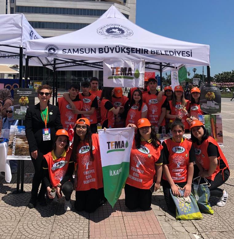 Tüm Türkiye’de olduğu gibi Samsun’da da kutlanan Çevre Haftası programına, tamamı TEMA gönüllülerinden oluşan Piri Reis MTAL 10/Gazetecilik sınıfı öğrencileri de katıldı.Türkiye Çevre Haftası, Samsun Cumhuriyet Meydanı’nda gerçekleştirilen etkinliklerle kutlandı. Saygı duruşunda bulunulması ve İstiklal Marşı’nın okunması ile başlayan tören, gösteriler ile devam etti. Birçok kurumun stant kurarak ‘geri dönüşüm’ ve ‘sıfır atık’ konusuna dikkat çektiği etkinlikte tamamı TEMA Gönüllülerinden oluşan Piri Reis MTAL 10/Gazetecilik sınıfı öğrencileri de yerlerini aldı.DOĞANIN KORUNMASI İLE İLGİLİ BİLGİ VERDİLERTEMA Vakfı önlükleri ile alanda dikkat çeken öğrenciler, doğanın korunması, çevre konusunda farkındalık oluşturma ve geri dönüşümün önemi konularında çeşitli bilgiler verdi. TEMA Vakfı’nda gönüllü olma esaslarını da paylaşan öğrenciler basınla da röportaj yaptı. Piri Reis MTAL 10/Gazetecilik sınıf öğrencilerinden Sümeyye Tarım ve Engin Can Girmeç, TEMA Vakfı’na gönüllü olmaktan ve çevre için çaba harcamaktan duydukları memnuniyeti dile getirdi. Muzaffer Barışyurt İlkokulu 3/C Sınıfı Öğretmeni Emrihan Yıldırım’ın geri dönüşüm kodlama atölyesi projesi çok ilgi gördüğü programda açıklama yapan Samsun TEMA Vakfı İl temsilcisi Leman Gürses Özay,“Değerli İl Temsilcilerimiz, İlçe/Mahalle Sorumlularımız, Genç TEMA ’larımız ve Mezun TEMA’larımız, TEMA Vakfı, 5 Haziran Dünya Çevre Günü’nde, dünyadaki ve Türkiye’deki plastik kirliliğinin ulaştığı boyutlara dikkat çekerek bir an önce önlemler alınması gerekiyor. Mikroplastiklerin birçok balık türünün midesine kadar giriyor. Vakıf, bugüne kadar üretilen yaklaşık 8 milyar ton plastiğin, yalnızca yüzde 9’unun geri dönüştürülebilir ”dedi.DÜZENLENEN PROGRAMA GENİŞ KATILIM OLDU.Çok sayıda vatandaşın ilgi gösterdiği programa; Samsun Valisi Doç. Dr. Zülkif Dağlı, Samsun Büyükşehir Belediye Başkanı Mustafa Demir, Karadeniz Sahil Güvenlik Komutanı Tuğamiral Ahmet Bahadır, Samsun İl Jandarma Komutanı Jandarma Kıdemi Albay Ömer Ersever Çevre, Şehircilik ve İklim Değişikliği İl Müdürü Ömer Bolat, Samsun İl Milli Eğitim Müdürü Dr. Murat Ağar Atakum İlçe Milli Eğitim Müdürü Mehmet İrfan Yetik, İlkadım İlçe Milli Eğitim Müdürü Özer Ersoy’un yanı sıra TEMA Vakfı Samsun İl Temsilcisi Leman Özay, TEMA Vakfı Samsun İl Temsilcisi Yardımcıları Nagihan Çağlak ve Bilsen Şahin, TEMA Vakfı Samsun İlkadım İlçe Sorumlusu ve aynı zamanda Piri Reis MTAL İngilizce Öğretmeni Derya Keleş Korkmaz, TEMA Vakfı Canik Mahalle Sorumlusu Özgür Ermiş ve Samsun Genç TEMA Başkanı Yaren Durmuş katıldı.Köksal ÖNER