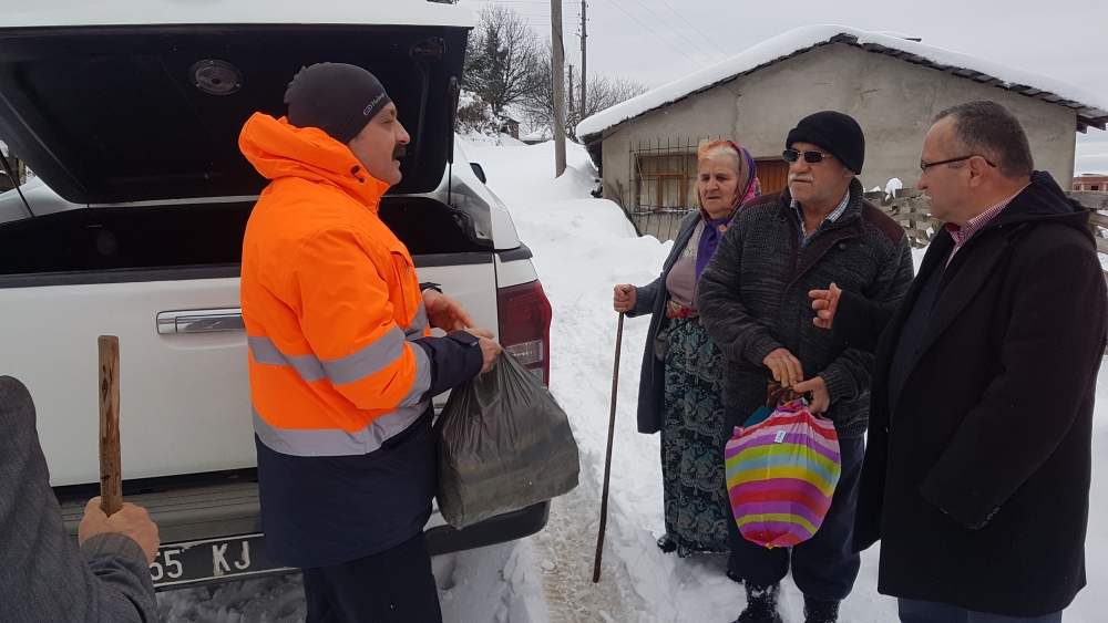 Fen İşleri Müdürlüğü’ne bağlı ekipler rutin yol temizleme çalışmalarını sürdürürken, Başkan Kılıç’ın talimatıyla mahalle muhtarlarıyla irtibata geçen Kültür ve Sosyal Müdürlüğü’ne bağlı ekipler, kar yağışı altındaki Ambartepe, Kesikkaya ve Örencik mahallerinde ikamet eden ihtiyaç sahibi vatandaşlara ulaşarak, hem sorunlarını dinledi, hem de erzak yardımında bulundu.