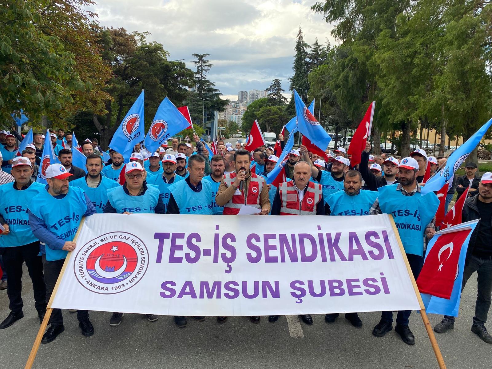 Başta işçiler olmak üzere, toplumun büyük bir bölümünün yaşama şartlarının ağırlaştığına vurgu yapan TES-İŞ Samsun Şube Başkanı Emrah Baylan, “Mutlu bir azınlık dışında halkımız geçim sıkıntısıyla mücadele etmektedir. Yaşadığımız sorunlara dikkat çekmek için önce geçtiğimiz ay 81 ilde basın açıklaması yaptık. Ardından 26 Ağustos’ta Tekirdağ/Çerkezköy’de, 3 Eylül’de ise Zonguldak’ta on binlerce işçinin katıldığı mitingler yaptık. Sesimizi duyurmak istedik. Sağduyulu davranmaya gayret ettik. Diyalog kapılarını açık tuttuk. Ancak bir sonuç alamadık. Sürekli sabırlı olmamız istendi. Ama bıçak kemiğe dayandı. Bundan sonra sözümüzü meydanlarda yüzbinler ile söyleyeceğiz. Ekonomik krizin bedelini işçiler olarak biz ödemeyeceğiz.” dedi.