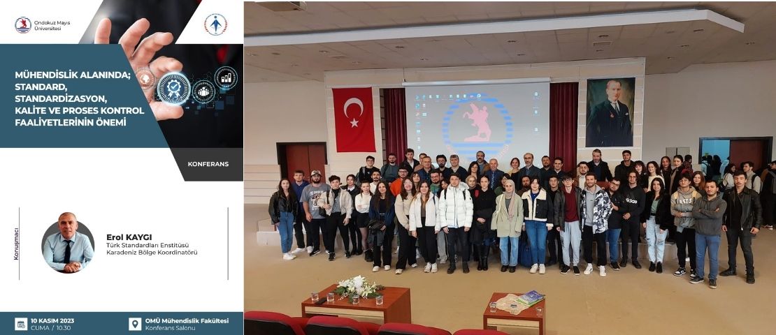 Ondokuz Mayıs Üniversitesi (OMÜ) Mühendislik Fakültesi tarafından davet edilen Türk Standartları Enstitüsü (TSE) Karadeniz Bölge Koordinatörü Erol Kaygı, ‘Mühendislik Alanında; Standard, Standardizasyon, Kalite ve Proses Kontrol Faaliyetlerinin Önemi’ adlı konferans verdi.Mühendislik Fakültesi Konferans Salonunda düzenlenen etkinliğe; Rektör Yardımcısı Prof. Dr. Sevim Alışır, Mühendislik Fakültesi Dekanı Prof. Dr. Yıldıray Topcu, dekan yardımcıları, akademisyenler ile öğrenciler katıldı.KAYGI, TSE’NİN STAJ PROGRAMI HAKKINDAKİ AŞAMALARA DA DEĞİNDİKonferansta Kaygı, TSE’nin faaliyet alanları hakkında mühendislik öğrencilerini detaylı bilgilendirdi. Ayrıca kalite yönetim sistemlerine de değinen Kaygı, bu alandaki başarının kurumlar için önemli bir aşama olduğunu belirtti. Öğrencilerden gelen soruları da cevaplayan Kaygı, TSE’nin staj programı hakkındaki aşamalara da değindi. Konferans; Rektör Yardımcısı Prof. Dr. Sevim Alışır’ın Erol Kaygı’ya teşekkür belgesi takdimi ve hatıra fotoğrafı çekilmesiyle sona erdi.Köksal ÖNER