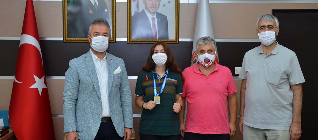 Türkiye İşitme Engelliler Karate Şampiyonasında Kato dalında Türkiye Şampiyonu olan Sinem Özkan, 19 Mayıs Belediye Başkanı Osman Topaloğlu’nu ziyaret etti.