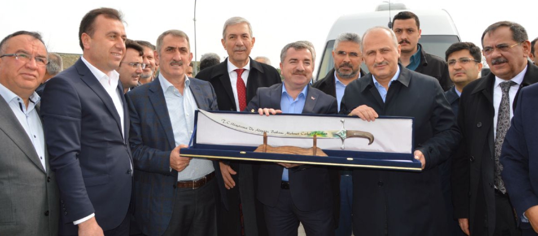 Karşılamada Havza Belediye başkanı Sebahattin Özdemir Ulaştırma ve Altyapı Bakanı Mehmet Cahit Turhan’a kılıç hediye etti.