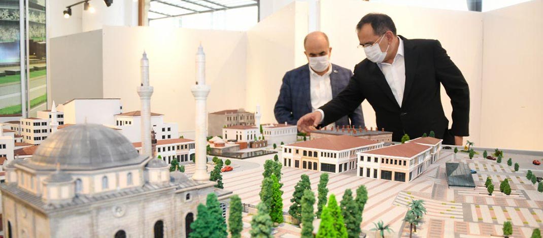 Bir süre sohbet eden Başkan Demir ve Vali Dağlı, daha sonra Büyükşehir Belediyesi Tanıtım Merkezi’nde hazırlanan ‘Saathane Meydanı Projesi’nin maketini inceledi. Burada yapılan çalışmalarla ilgili Vali Dağlı’ya bilgi veren Başkan Demir, “Saathane Meydanı Projesi ile birlikte şehrimizin tarihi dokusunu gün yüzüne çıkaracağız. Yüksek katlı binalar yerine yatay mimariye özen göstererek bölgeyi tekrar elden geçiriyoruz. Bölgedeki Taşhan, medrese ve camimizin restorasyon çalışmaları tamamlandı. Projemiz bittiğinde tarih kokan bir mekan haline gelecek” dedi.