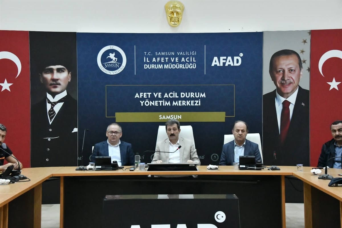Samsun Valisi Orhan Tavlı’nın başkanlığında 02.09.2023 Cumartesi günü akşam saatlerinde başlayarak ilimizin doğu ve merkez ilçelerini olumsuz etkileyen sel ve su baskınlarına yol açan yağışların ardından AFAD’da durum değerlendirme toplantıları gerçekleştirildi.Samsun Büyükşehir Belediye Başkanı Mustafa Demir, Vali Yardımcıları Hasan Öztürk ve İbrahim Civelek, Büyükşehir Belediyesi Genel Sekreteri İlhan Bayram, AFAD İl Müdürü Levent Uçarlı, AFAD Müdahale Dairesi Başkanı Yusuf Aysu, AFAD Arama ve Kurtarma Dairesi Başkanı Recep Şalcı ve kurum müdürlerinin katıldığı toplantılarda, yağış ve selden olumsuz etkilenen bölgelerin durumları analiz edilerek çalışmaların seyri konusunda değerlendirmelerde bulunuldu.SAHALARA YETERLİ SAYIDA EKİP VE ARAÇ GÖREVLENDİRMESİ YAPILDIAFAD’ın ilimiz için verdiği “turuncu” kodla beraber çalışmalara başlanıldığı ve Samsun Valiliği AFAD İl Müdürlüğü koordinesinde sahalara yeterli sayıda ekip ve araç görevlendirmesi yapıldığı ifade edildi. Toplantılarda, yağışın ve selin olumsuz etkilendiği bölgelerde; AFAD İl Müdürlüğü 123 arama kurtarma personeli, Büyükşehir Belediyesi il genelinde sahada 915 personel 267 iş makinası 129 kamyon, DSİ 7’inci Bölge Müdürlüğü 33 Araç 45 Personel, Karayolları 7’inci Bölge Müdürlüğü 13 Araç 30 Personel, İl Tarım Müdürlüğü 5 araç ve 10 personel, İl Sağlık Müdürlüğü sahada 54 ambulans ekibi 162 personel, Kızılay 5 personel 2 mobil aşevi aracı 1 kamyon 1 öncü araç, Samsun Ulaştırma ve Altyapı 9’uncu Bölge Müdürlüğü 8 personel, Samsun İl Emniyet Müdürlüğü 167 araç ve 503 personel, Çevre Şehircilik ve İklim Değişikliği İl Müdürlüğü 3 ekip (Atakum, İlkadım ve Canik ilçelerinde), Bilgi Teknolojileri ve İletişim Kurumu (BTK) 17 ekip 17 araç ve 34 personel, YEDAŞ 70 personel ve ilçe belediyelerinden de olmak üzere il genelinde toplam bin 717 personel, 305 iş makinesi, 138 kamyon ve 206 araç ile sahada aktif olarak çalışmaların aralıksız yürütüldüğü belirtildi.‘SEL VE SU BASKININDA HERHANGİ BİR CAN KAYBIMIZ OLMADI’Yağışın ilk anından itibaren AFAD İl Müdürlüğü’nde teyakkuza geçildiğini belirten Samsun Valisi Orhan Tavlı, “112 Acil Çağrı Merkezi’ne intikal eden afet ihbarlarının geciktirilmeksizin TAMP (Türkiye Afet Müdahale Planı) grubuna bildirildiğini, ihbarlara yönelik Samsun Büyükşehir Belediye Başkanlığı, DSİ, ilçe belediyeleri ve kurumlara ait iş makineleri ve itfaiye ile birlikte olumsuz vakalara karşı derhal müdahale edildi. Yoğun yağışın neden olduğu sel ve su baskınında herhangi bir can kaybınız olmadı. Vatandaşlarımızın yağışın devam etme durumuna karşı herhangi bir olumsuzluğa mahal verilmemesi adına dikkatli olmalarını ve teyakkuz halinde olmalarını diliyorum. Tüm Samsunlu hemşerilerime geçmiş olsun dileklerimi iletiyorum. Ayrıca; il genelinde ilgili tüm kamu kurum ve kuruluşların çalışmalarını titizlikle sürdürüyoruz. Olumsuz hava şartlarının bugün sabah saatlerine kadar devam edeceğini, buna karşı kamu kurum ve kuruluşları olarak teyakkuz halinde olacağız.” diye konuştu.Köksal ÖNER