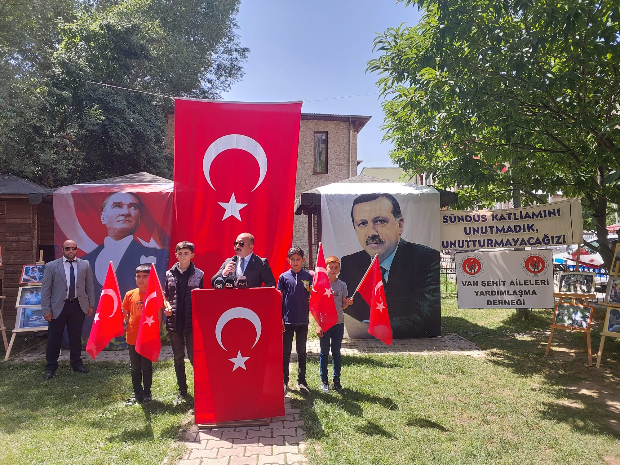 Van’ın Bahçesaray ilçesindeki Sündüs Yaylası’nda, PKK terör örgütünün 30 yıl önce kurşuna dizdiği 14’ü çocuk, 24 kişi, mezarları başında anıldı.Bahçesaray ilçesinde kışlık ihtiyaçlarını karşılamak, koyunlarını otlatmak amacıyla yaylaya giden ve 18 Temmuz 1993 gecesi PKK’lı teröristlerce şehit edilen 11 aileden 14’ü çocuk 24 kişi için anma programı düzenlendi. Ayrıca Programa Programa Bahçesaray Kaymakamı Onur Alimoğlu Bahçesaray Belediye Başkan Vekili Ramazan Takmaz, Bahçesaray Şehit Aileleri Derneği Yönetim Kurulu Başkanı Sabahattin Samsa,Türkiye Harp Malulü Gaziler Şehit Dul ve Yetimleri Derneği Bafra Şubesi ve ayrıca Samsun Polis Okulu Mezunları Emeklileri ve Çalışanları Sosyal Dayanışma ve Yardımlaşma Derneği (SAMPOMDER) Genel Merkezi Basın Sözcüsü Köksal Öner,Bahçesara İlçe Emniyet Amiri İbrahim Yücel, Bahçesara İlçe Jandarma Komutanı Jandarma Binbaşı Ziyaeddin Bolat, AK Parti Bahçesaray İlçe Yönetim Kurulu Başkanı Cumali Sabırlı ve ilçe sakinleri katıldı.‘LANETLENMİŞ ALÇAKLIKLARINDAN SADECE BİR ÖRNEĞİDİR’Şehitleri anmak için düzenleyen program saygı duruşu ve İstiklal Marşı’nın okunmasıyla başladı. Programda bir konuşma yapan Bahçesaray Kaymakamı Onur Alimoğlu, Sündüz Yaylası’nda 24 kişinin hain terör örgütü PKK tarafından şehit edildiğini hatırlattı. Bahçesaray’ da 30 yıl önce yaşanan acının tarifinin mümkün olmadığını ifade eden Kaymakam Onur Alimoğlu, “Masumların ve mazlumların canına kıymak, dilleri küfürsüz, elleri silahsız, hiçbir tehdit barındırmayan, akıllara ve vicdanlara sığmayacak bir şekilde güçsüzleri katletmek, insanlıktan nasibini almamış ve her daim hainliği tercih etmiş PKK terör örgütünün sıradanlaşmış ve bir o kadar da lanetlenmiş alçaklıklarından sadece bir örneğidir. Aklını, ruhunu ve vicdanını şeytana satmış bu örgüt hangi alçaklığın peşinde koşarsa koşsun, hangi hainliği hayata geçirirse geçirsin hiçbir zaman emellerine ulaşamayacak, hiçbir zaman başarılı olamayacaktır. Bizler imanımızla kararlılığımızla hiçbir zaman ülkemizi, devletimizi ve milletimizi böldürtmeyeceğiz. Cumhurbaşkanımızın önderliğinde ecdadımızın mirasına, çocuklarımızım geleceğine, Türkiye’mizin yüzyılına sahip çıkacağız.” diye konuştu.‘CANİ İNSANLAR ANNEMİZİ O GECE ELİMİZDEN ALDILAR’Bahçesaray Şehit Aileleri Derneği Yönetim Kurulu Başkanı Sabahattin Samsa ise katliamında kaybettikleri yakınlarının acısının ilk günkü sıcaklığını koruduğunu belirtti. Sündüz katliamında annesi Huri Samsa ve akrabalarını kaybettiğini ifade eden Başkan Sabahattin Samsa, “Bu insanların bir ideolojisi yoktu. Hepsini bir çadıra toplayarak hunharca şehit ettiler. Bir anne evladını 9 ay karnında taşır büyütür. Annemin fedakarlığına karşı bir evlat olarak görevimi yapamadım. Keşke bir müddet daha yaşamış olsaydı. Onun fedakarlıklarını ödeyebilseydim. Herkes için bu geçerli. Cani insanlar annemizi o gece elimizden aldılar. Bu tür terör belalarını bertaraf etmek için birlik ve beraberliğimizi daim etmemiz gerekiyor. Asla zalimlerin yanında yer almadık. Geçmişimize sahip çıkmamız lazım. Bu tür eylemleri gerçekleştiren canileri her zaman anlatmamız gerekir. Geçmişimize sahip çıkmamamız lazım.” ifadelerini kullandı.Konuşmaların ardından 30 yıl önce şehit edilenlerin fotoğraflarının yer aldığı fotoğraf sergisi gezildi. Serginin gezilmesinin ardından kalabalık açtıkları Türk bayrağı ile birlikte PKK terör örgütü aleyhine slogan atarak şehitliğe kadar yürüdü. Program şehitlikte okunan Kur’an-ı Kerim tilavetiyle sona erdi.Köksal ÖNER
