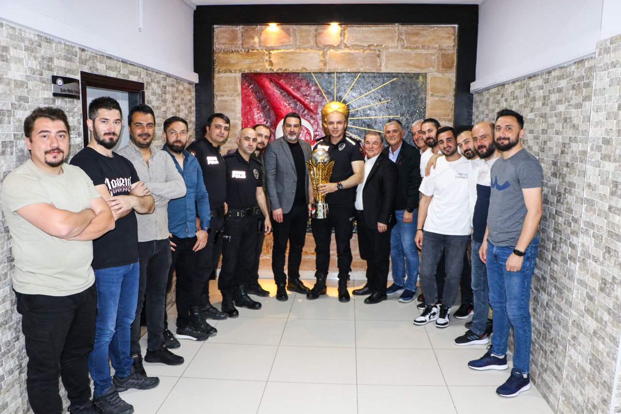 Yılport Samsunspor Kulübü Samsun İl Emniyet Müdürlüğüne bağlı olan Spor Güvenliği Şube Müdürlüğü ve Çevik Kuvvet Şube Müdürlüğü’nü aldığı şampiyonluk kupasıyla birlikte ziyaret etti.Spor Güvenliği ve Çevik Kuvvet Şube Müdür Vekili Başkomiser Yasin Yılmaz ve polis memurların katıldığı ziyarette, Samsunspor Başkan Vekili ve İcra Kurulu Üyesi Veysel Bilen, Genel Müdür ve İcra Kurulu Üyesi Soner Soykan, İcra Kurulu Üyesi Suat Çakır ve Tesisler Müdürü Sinan Hacıyunus katıldı.YILPORT SAMSUNSPOR’DAN TEŞEKKÜR FORMASISamimi bir ortamda gerçekleşen ziyarette sezon boyu yaptıkları hizmetlerden dolayı teşekkür eden Samsunspor Başkan Vekili ve İcra Kurulu Üyesi Veysel Bilen ardından Samsun İl Emniyet Müdürlüğüne bağlı olan Spor Güvenliği ve Çevik Kuvvet Şube Müdür Vekili Başkomiser Yasin Yılmaz’a şampiyonluk için özel olarak çıkarttığı ve üzerinde adı yazılı olan 55 numaralı formamayı takdim etti.Köksal ÖNER