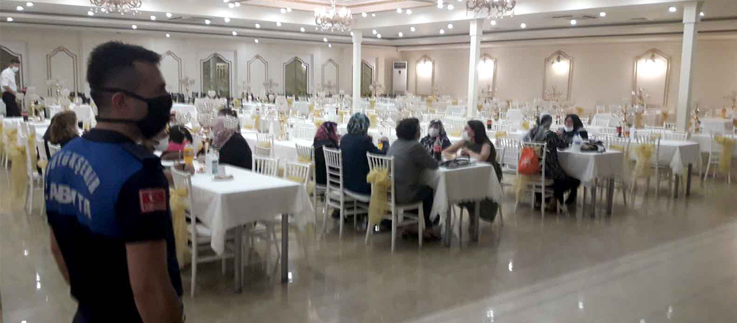 İçişler Bakanlığı’nın son günlerde artan koronavirüs vakalarını önlemek için yayınladığı genelge çerçevesinde Samsun’da işyerleri denetiminin ardından hafta sonu da düğün salonları kontrol edildi. Samsun Büyükşehir Belediyesi zabıta ekipleri denetimlerde, sosyal mesafe kuralına göre masa ve sandalye düzeni ile oyunların temassız olması konusunda vatandaşları uyardı. Denetim esnasında düğün sahiplerinden oyun oynanırken sosyal mesafeye dikkat edilecek şekilde oyunlar oynanması istendi.