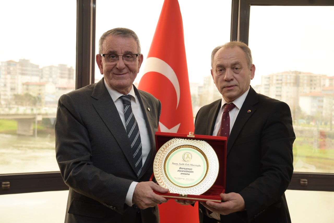 Samsun Ticaret ve Sanayi Odası (STSO) Yönetim Kurulu Başkanı ve ayrıc Türkiye Odalar ve Borsalar Birliği (TOBB) Başkan Yardımcısı Salih Zeki Murzioğlu, geçtiğimiz Ekim ayında borsa organ seçimlerini tamamlayan Çarşamba Ticaret Borsası Yönetimi’ne, “Hayırlı olsun” ziyaretinde bulundu.Ziyarette gündeme gelen bölge için büyük öneme sahip fındık konusunda da ortak akıl vurgusu yapıldı. Samsun Ticaret ve Sanayi Odası (STSO) Yönetim Kurulu Başkanı ve ayrıca Türkiye Odalar ve Borsalar Birliği (TOBB) Başkan Yardımcısı Salih Zeki Murzioğlu ve beraberindeki, Yönetim Kurulu Başkan Yardımcısı Kadir Beytekin, Yönetim Kurulu Sayman Üyesi Fahri Eldemir, Yönetim Kurulu Üyeleri Erkan Malkoç, Ayhan Çakır, Zafer Dilmen ve Kerem Tüfekçi, geçtiğimiz yıl Ekim ayında borsa organ seçimlerini tamamlayan Çarşamba Ticaret Borsası Yönetimi’ne “Hayırlı olsun” ziyaretinde bulundu.BAŞKAN MURZİOĞLU VE MİSAFİRLERİNE TEŞEKKÜR ETTİÇarşamba TB Meclis Başkanı Hacı Toraman, Yönetim Kurulu ve Meclis üyelerinin de bulunduğu ziyarette Başkan Murzioğlu, borsa meclisine yeni dönemde başarılı çalışmalar temenni etti. Karşılıklı istişarenin yapıldığı ziyarette Yönetim Kurulu Başkanı Kazım Yılmaz’ı temsilen Meclis Başkanı Hacı Toraman ve Yönetim Kurulu Başkan Yardımcısı Servet Zeren yer aldı. Toraman, temennileri için Başkan Murzioğlu ve misafirlerine teşekkür etti. Murzioğlu’na plaket taktim edildi Ziyarette Toraman ve Murzioğlu, Samsun ve Çarşamba’nın ticari hayatı ve ekonomik getirisi için büyük bir öneme sahip olan fındığın ve Samsun’da yetişen diğer tarım ürünlerinin Türkiye ve dünya pazarında gerçek değerini alabilmesi ve hem dünya pazarında yaygınlaşması için fikir birliği ile ortaklaşa çalışmalar yapılması gerektiğini vurguladı. Samimi bir ortamda gerçekleşen ziyaret sonrası Toraman, Başkan Murzioğlu’na ziyaretlerinden ötürü plaket takdim etti.Köksal ÖNER